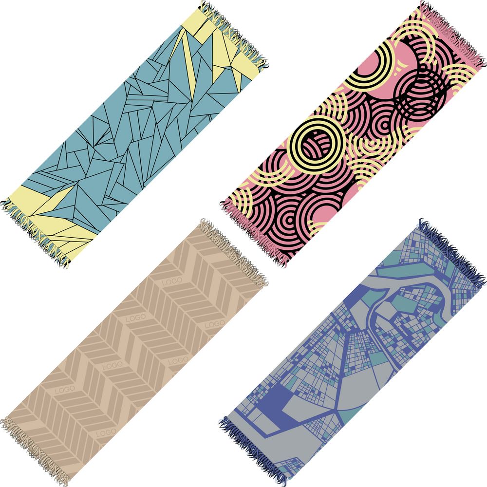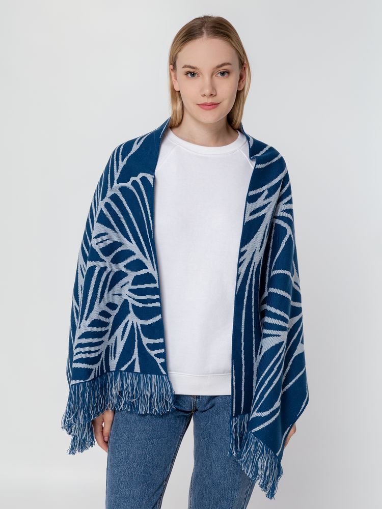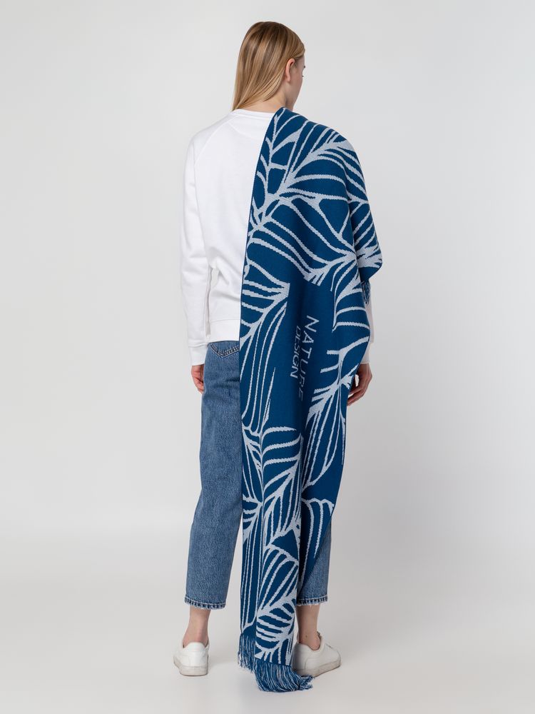Палантин с пестрой бахромой с вывязанным логотипом и индивидуальным рисунком в фирменной цветовой гамме.