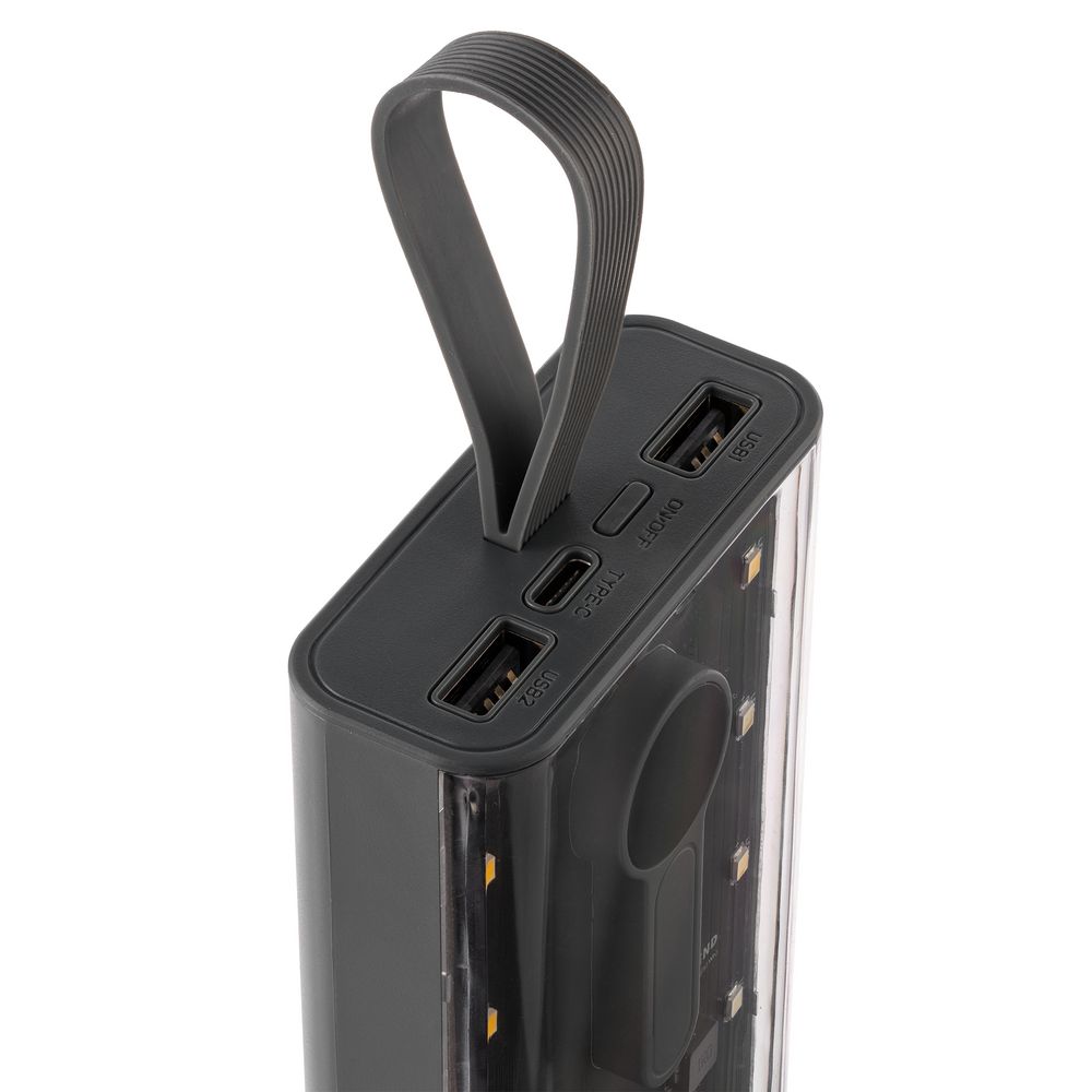 Выходные параметры: – USB-A (гнездо на корпусе), Type-C, Lightning, Micro USB (кабели): 5 В, 2 A (до 3 А суммарно при зарядке двух устройств)