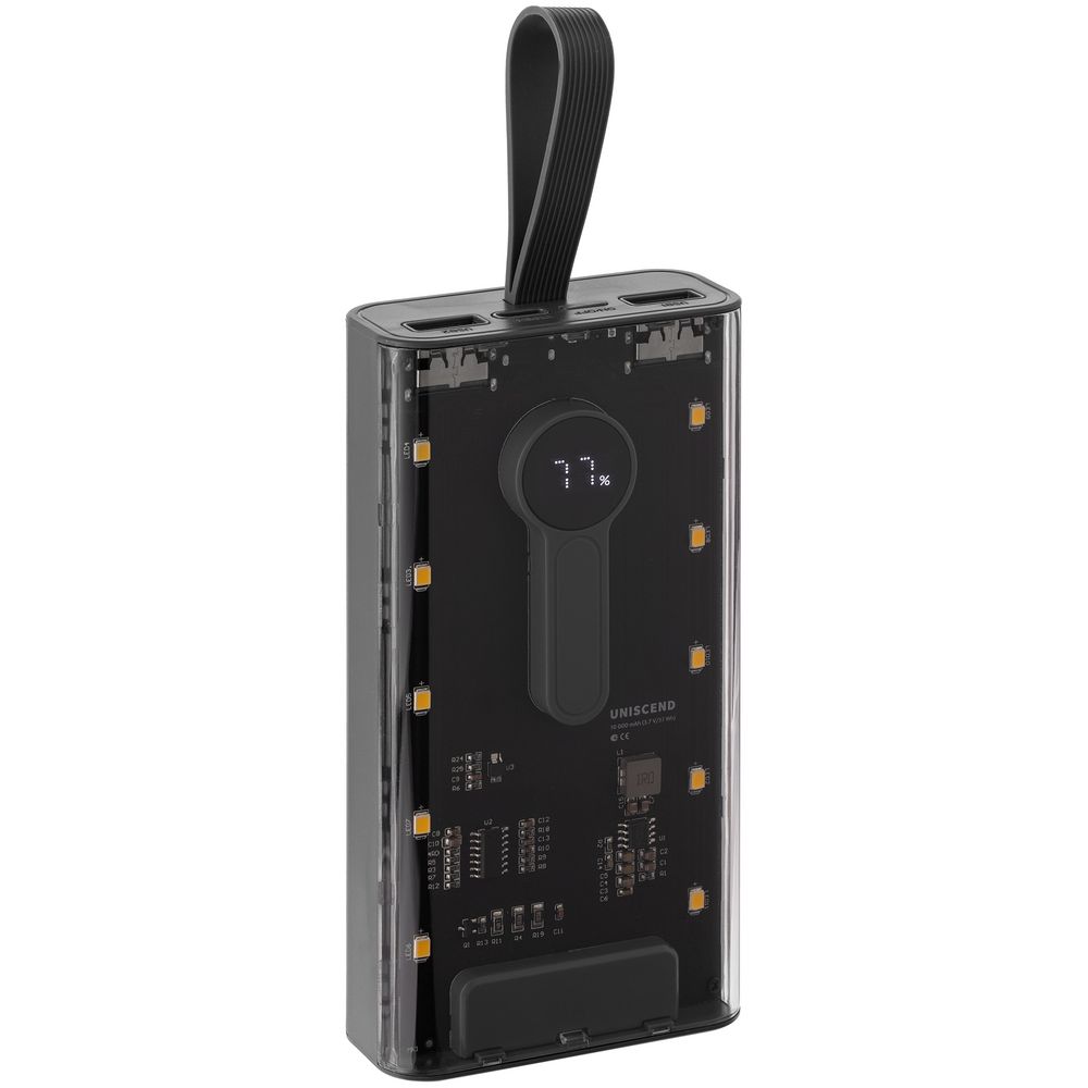 Необычный дизайн коллекции Uniscend Trellis выгодно выделяет новую серию устройств из прозаичного ряда внешних аккумуляторов. Они не поддерживают беспроводную зарядку, зато точно привлекают внимание: под прозрачной панелью хорошо видны электронная начинка и цифровой индикатор оставшегося в аккумуляторе заряда, а мягкая светодиодная подсветка теплого оттенка дополняет технологичный внешний вид.