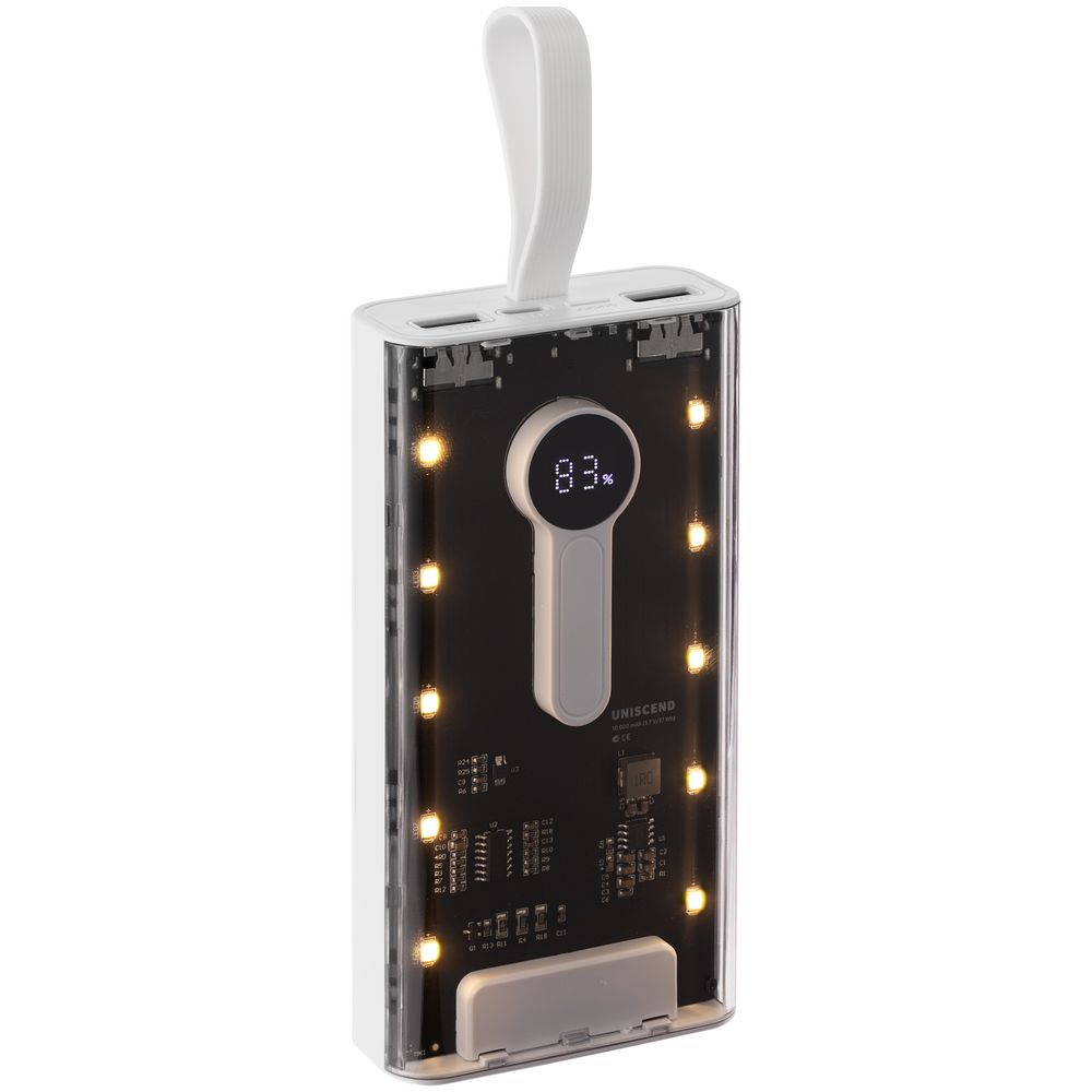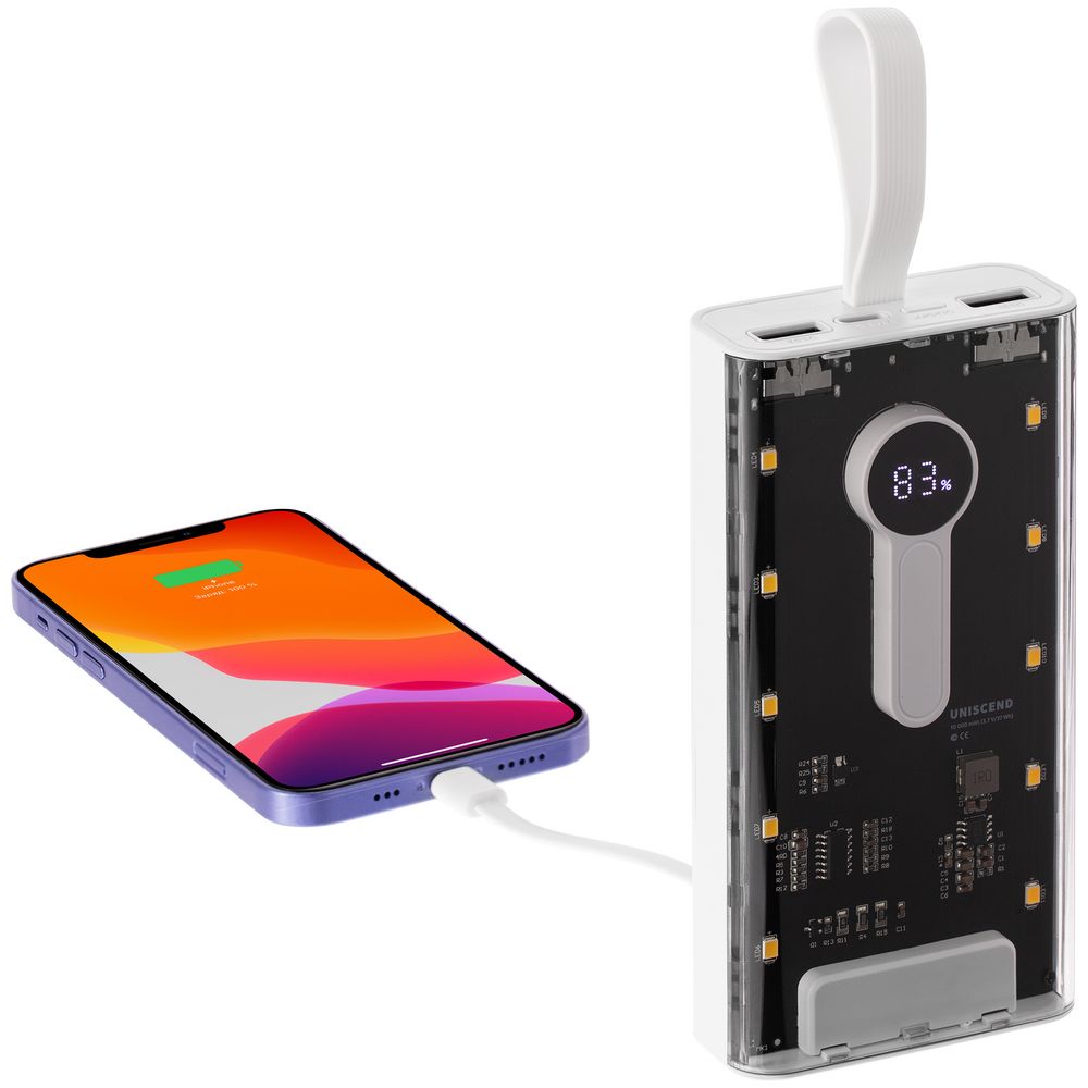 Необычный дизайн коллекции Uniscend Trellis выгодно выделяет новую серию устройств из прозаичного ряда внешних аккумуляторов. Они не поддерживают беспроводную зарядку, зато точно привлекают внимание: под прозрачной панелью хорошо видны электронная начинка и цифровой индикатор оставшегося в аккумуляторе заряда, а мягкая светодиодная подсветка теплого оттенка дополняет технологичный внешний вид.