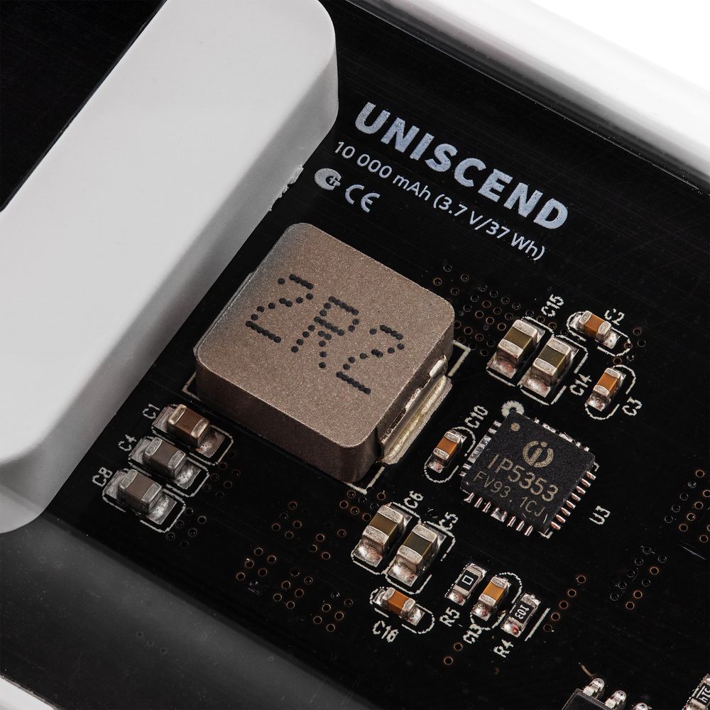 Необычный дизайн коллекции Uniscend Trellis выгодно выделяет новую серию устройств из прозаичного ряда внешних аккумуляторов. Они не поддерживают беспроводную зарядку, зато точно привлекают внимание: под прозрачной панелью хорошо видна электронная начинка. Цифровой индикатор показывает оставшийся в аккумуляторе заряд, а также отображает показатели зарядного процесса Quick Charge в вольтах и амперах.