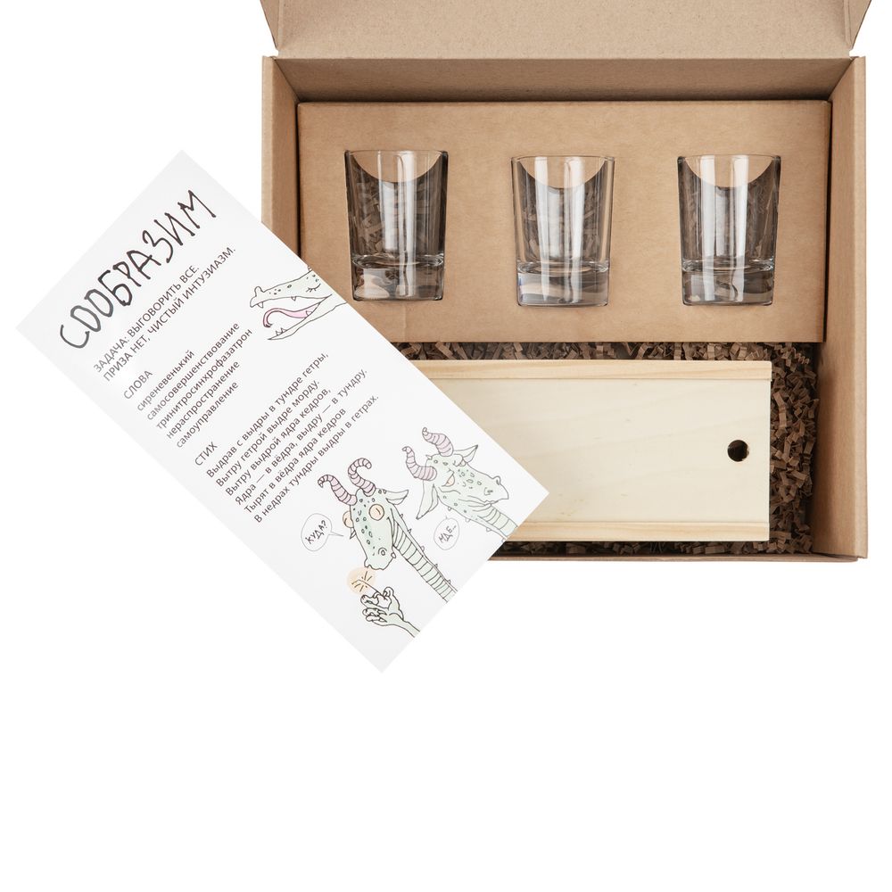 Одна голова хорошо, а две лучше! Третьего же участника можно пригласить для равновесия сил. С набором «Сообразим» на троих получится сообразить во всех смыслах: потренировать смекалку и навыки дикции в немножко усложненных условиях.