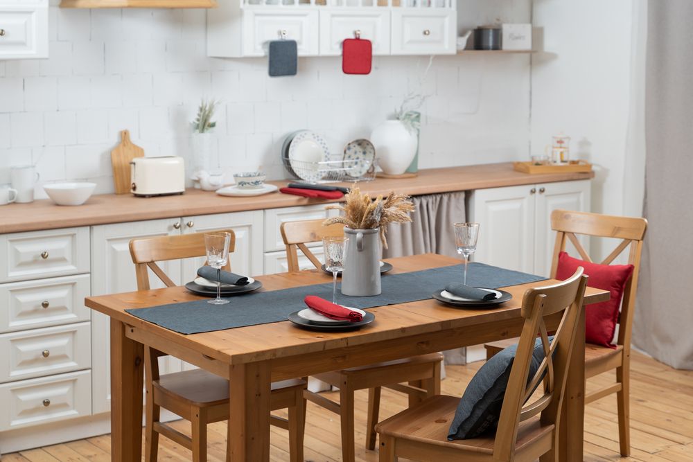 Предметы коллекции кухонного и домашнего текстиля Settle In прекрасно компонуются между собой, создавая интерьерное решение в едином стиле. Износостойкая ткань, имитирующая лен, обработана пропиткой от грязи и воды, что делает ее применение для кухни и дома практичным, а уход — легким.