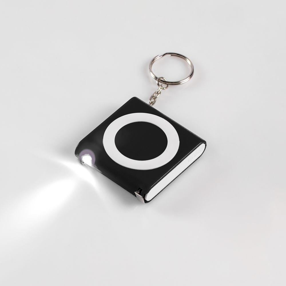 Компактный брелок со встроенной рулеткой и фонариком. Рулетка длиной 1 м в любой момент позволит произвести необходимые измерения, а фонарик — подсветить замочную скважину или найти в сумке затерявшийся предмет. Работает от 3 встроенных батареек типа LR41. Поставляется в полиэтиленовом пакете.