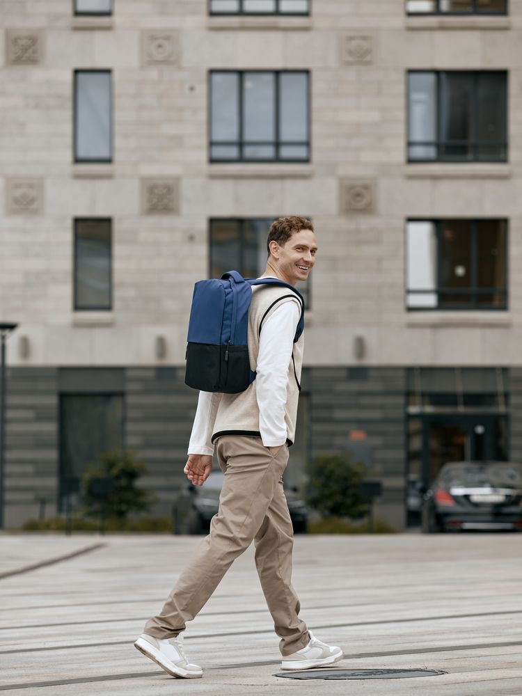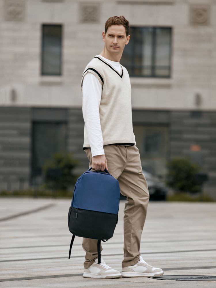 Двухцветное исполнение с темным низом и более светлым верхом, с одной стороны, помогает рюкзаку дольше сохранять опрятный внешний вид, а с другой — позволяет активнее и контрастнее выделить логотип компании.