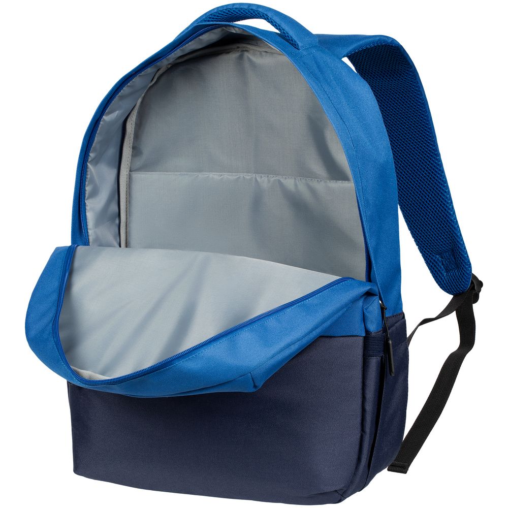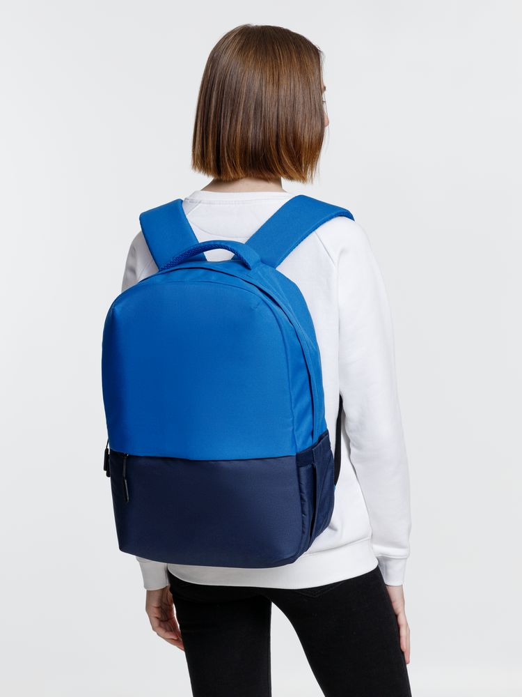 Двухцветное исполнение с темным низом и более светлым верхом, с одной стороны, помогает рюкзаку дольше сохранять опрятный внешний вид, а с другой — позволяет активнее и контрастнее выделить логотип компании.