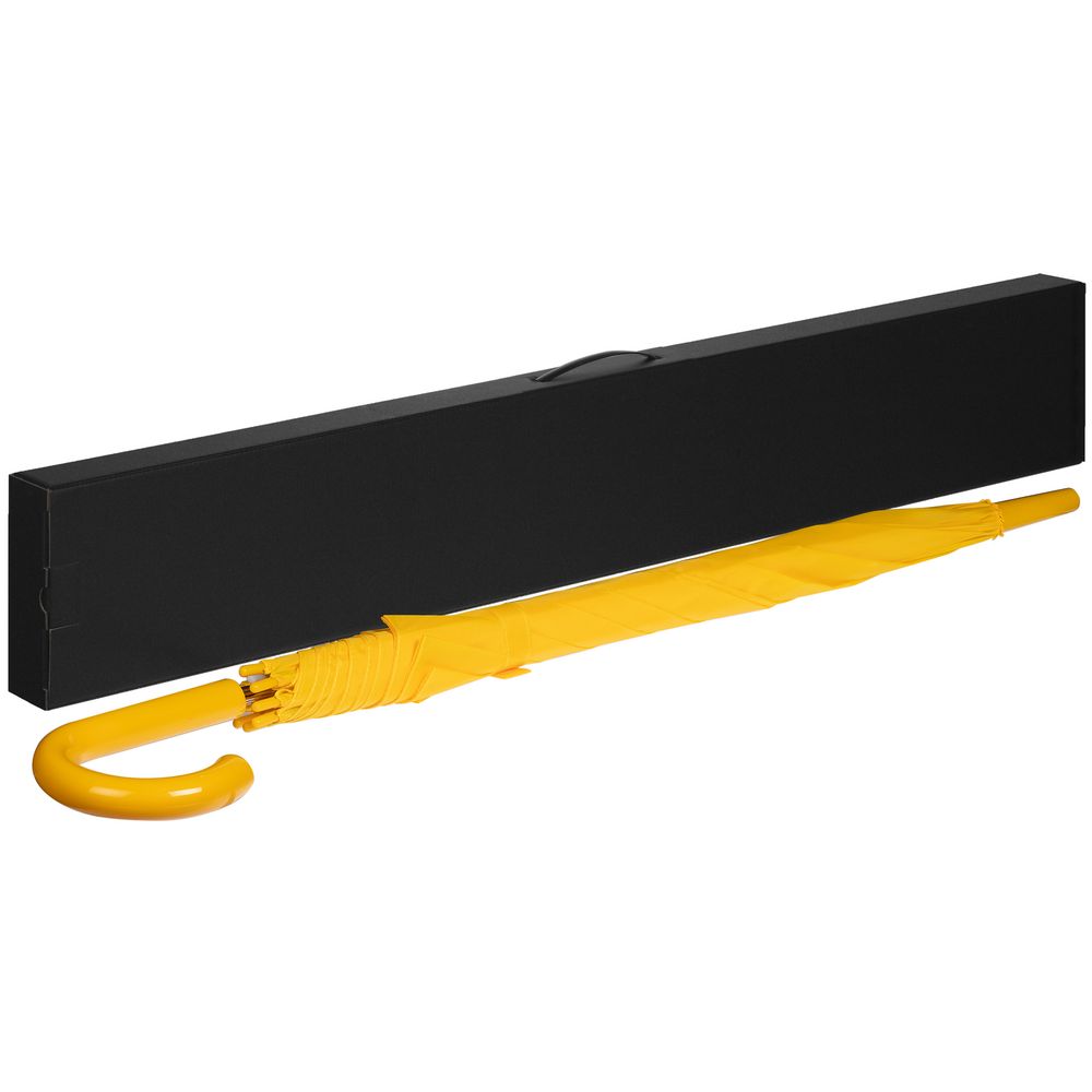 Самосборная коробка из микрогофрокартона с матовой ламинацией для зонта-трости со вставной пластиковой ручкой.