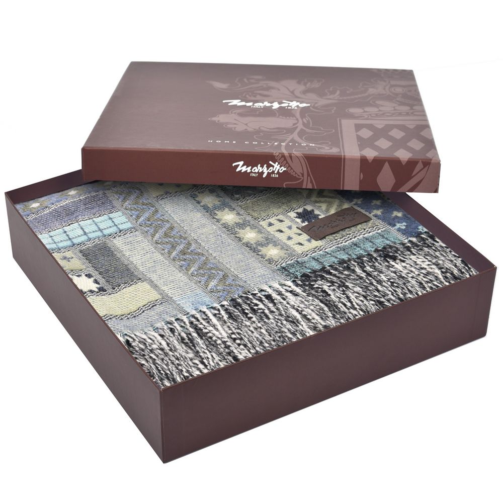 Изысканный плед из шерсти мериноса Baltimora с оригинальным дизайнерским исполнением в стиле пэчворк подарит максимальный комфорт, а также станет запоминающимся подарком и идеальным дополнением интерьера в лучших традициях итальянского бренда Marzotto.