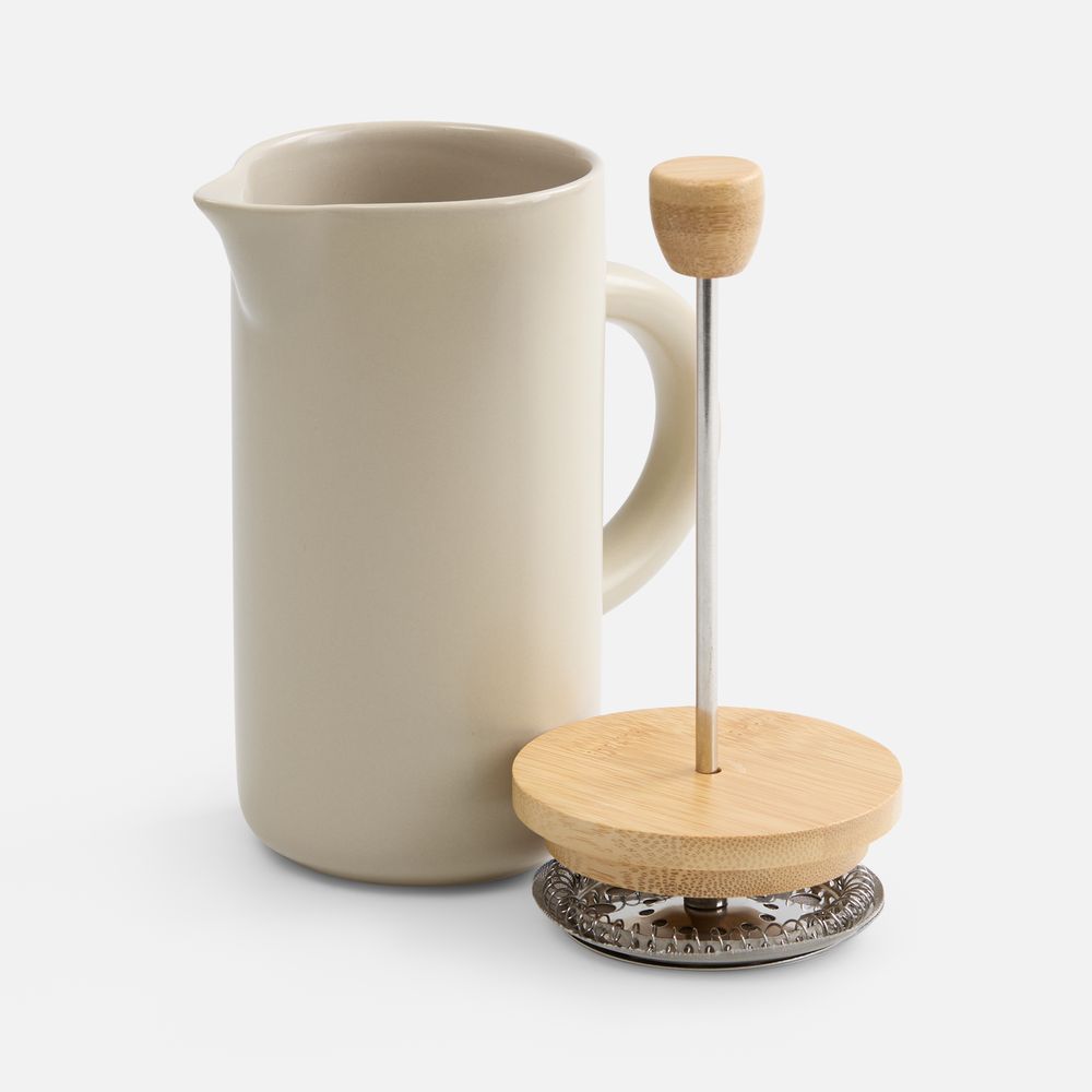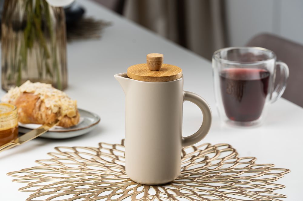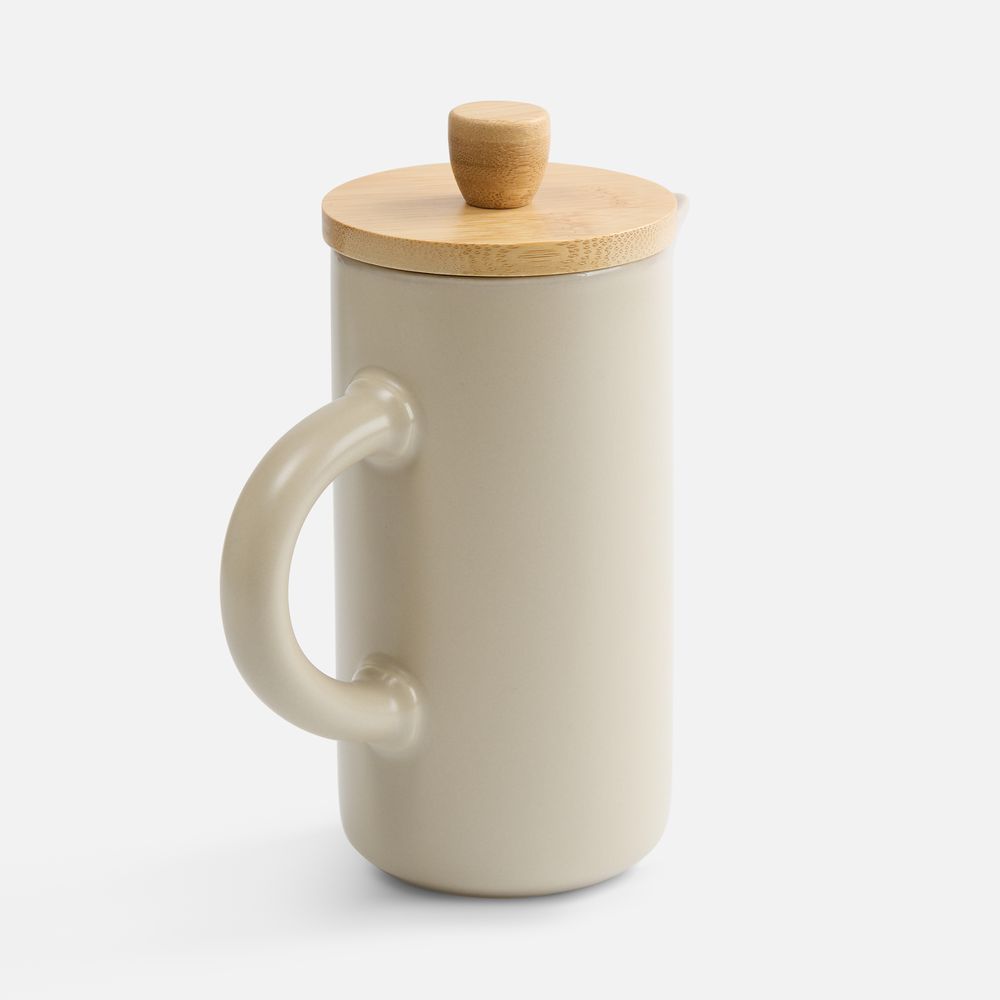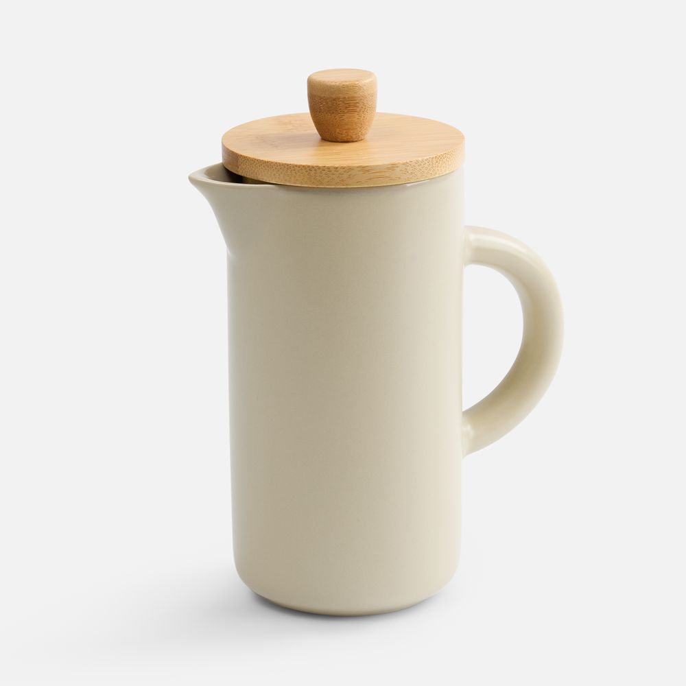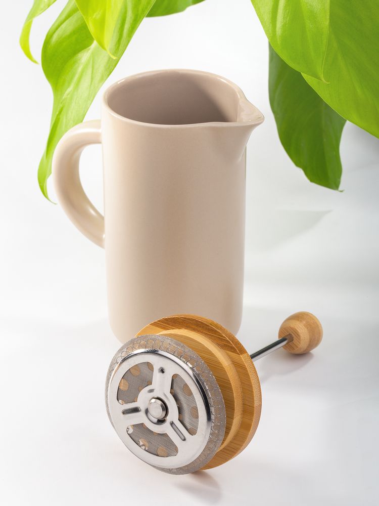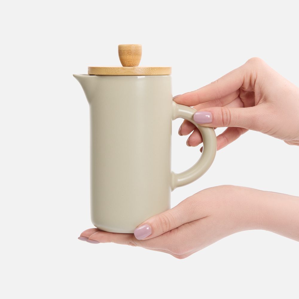 Френч-пресс Keramikk выполнен из керамики, благодаря чему он хорошо сохраняет температуру напитка, не обжигает руки и прост в уходе. Контраст бамбуковой крышки и керамики выглядит действительно интересно и необычно.Емкость 350 мл. Поставляется в индивидуальной упаковке.