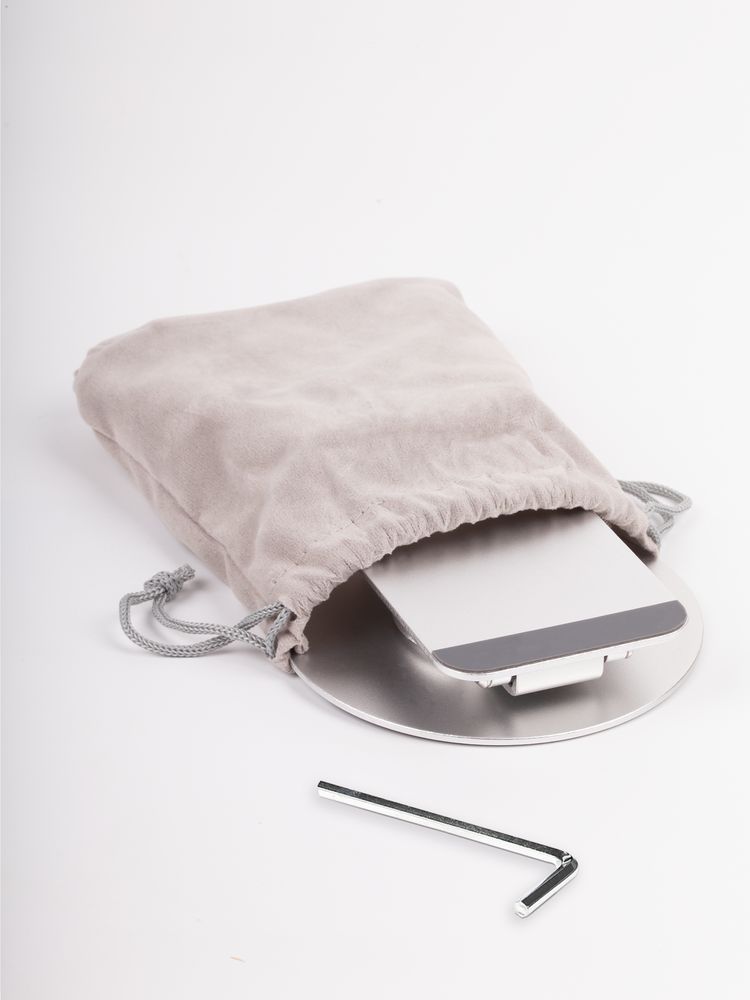 Подставка складывается и не занимает много места, ее удобно взять с собой на встречу или в дорогу. Поставляется в мешочке из вельвета и коробке из плотного картона.