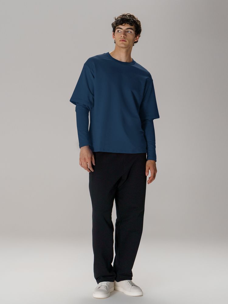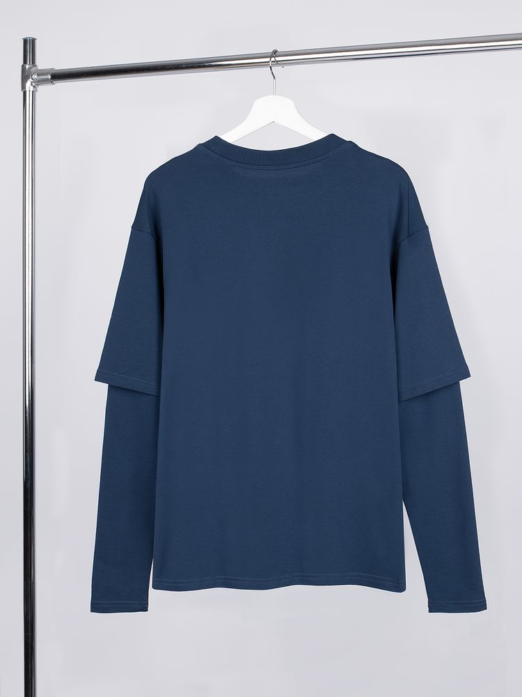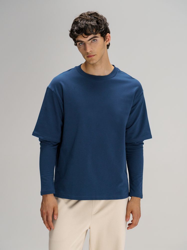 Футболка оверсайз с двойным рукавом Kosmos, темно-синяя