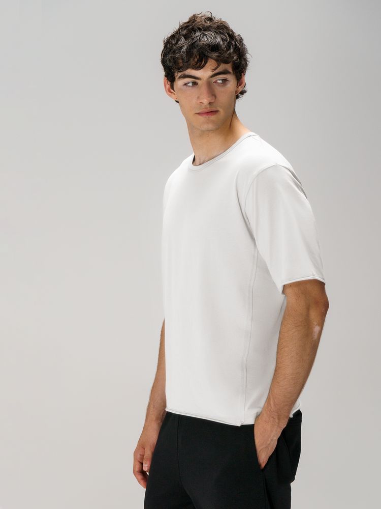 Футболка унисекс свободной посадки Vozduh создана для тех, кто следит за трендами и ценит комфорт. Необработанные края рукавов и низа изделия добавляют ему оригинальности и легкой небрежности, а боковые вставки создают притягательный летящий силуэт. Футболка изготовлена из хлопка с добавлением эластана, что обеспечивает особый комфорт и прочность изделия.