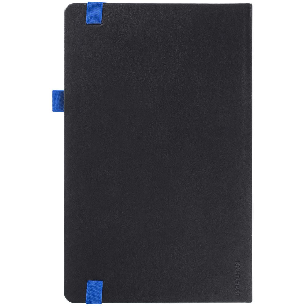 Ежедневник с твердой обложкой, выполнен из материала Waltz, черный АА, дополнен синей резинкой и ляссе.