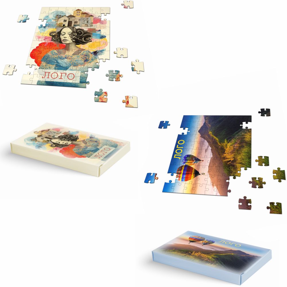 Пазлы из картона с индивидуальным дизайном — недорогой вариант промопродукции или сувенира на случай акции, выставки, праздника. Пазлы упаковываются в коробку-«рукав» в разобранном виде.