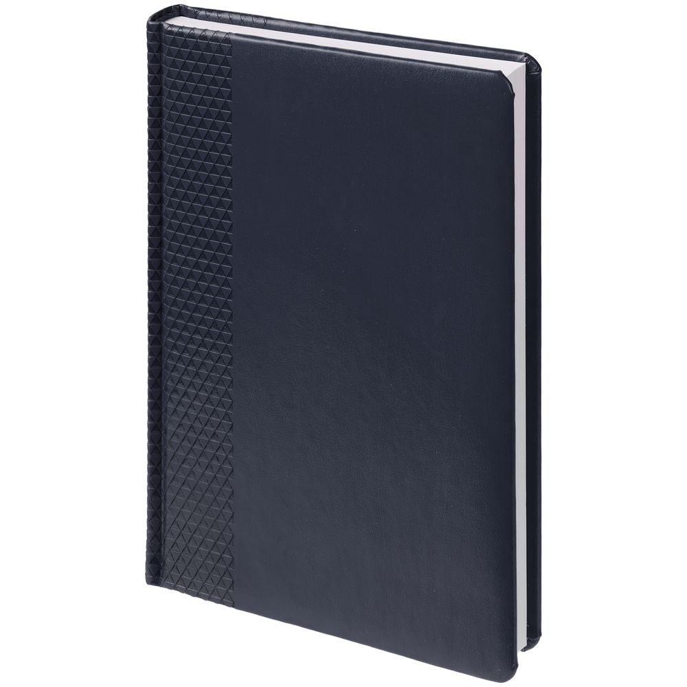 Ежедневник с твердой обложкой, выполнен из материала Waltz, темно-синий XX, дополнен ляссе в цвет материала.