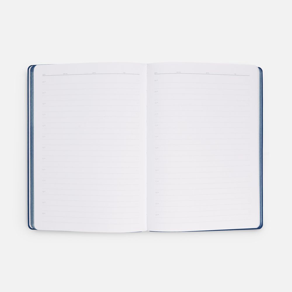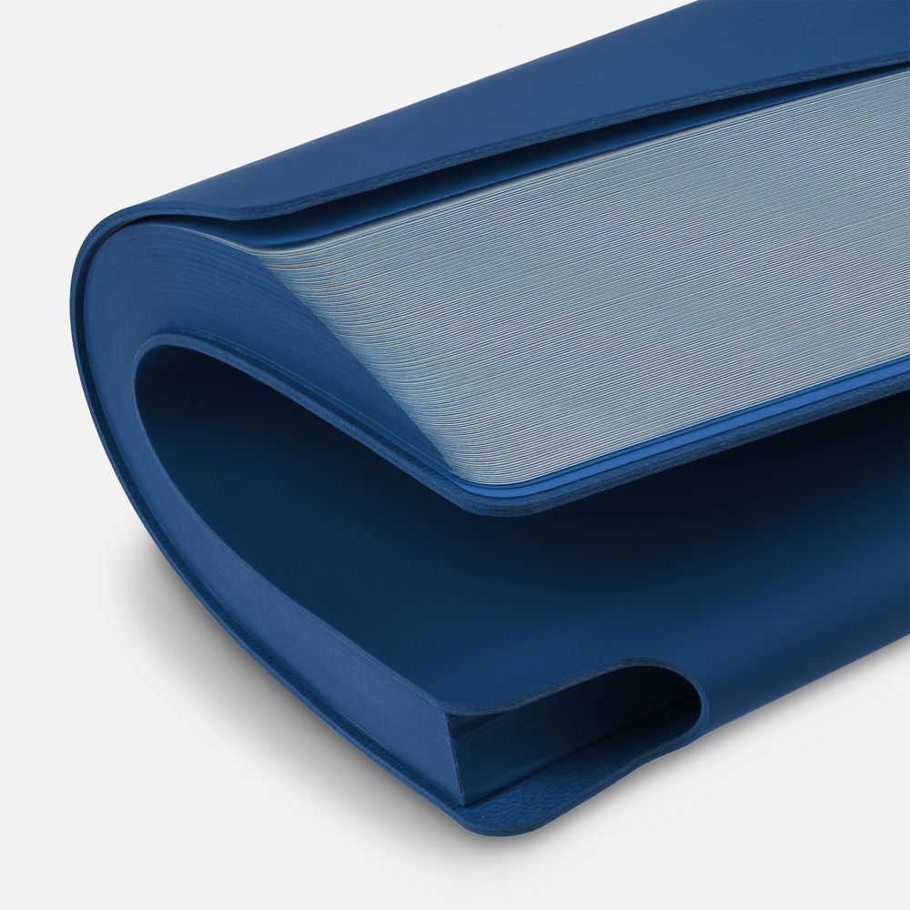 Гибкая обложка выполнена из материала Soft Touch Ultra, синий НН и Latte, синий НН (внутренняя часть обложки). Внутри корешка — специальное место для крепления ручки размером до 15х1 см.