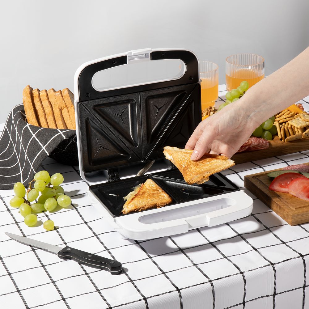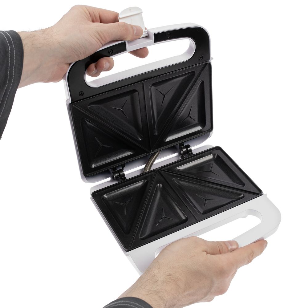 Сэндвичница быстро разогревается и поджаривает бутерброд в считаные минуты. Равномерно прогревающиеся панели с антипригарным покрытием позволяют быстро и качественно приготовить вкусную закуску с разными начинками, а затем легко очистить прибор. Покрытие устойчиво к механическим повреждениям и не вступает в химические реакции с ингредиентами.