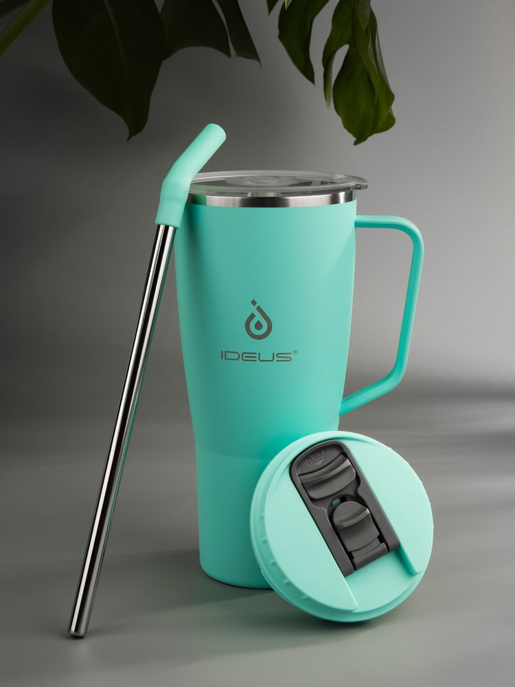 • 2 крышки в комплекте: одна на 100% герметичная с механизмом блокировки отверстия для питья, вторая — с отверстием для трубочки