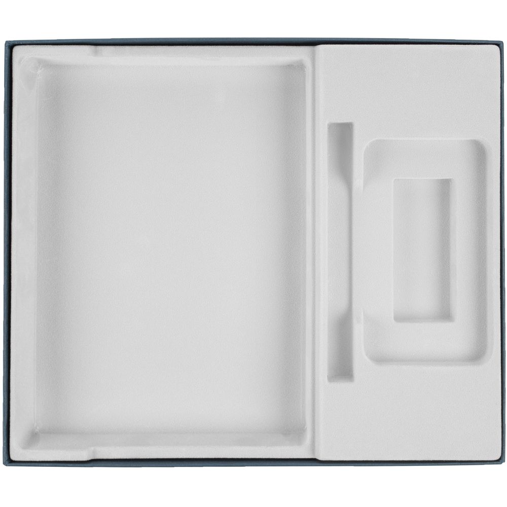 Коробка из переплетного картона, кашированного дизайнерской бумагой Malmero, с флокированным ложементом. Подходит для ежедневника 2,3х16х21,5 см, аккумулятора 7х12,4х1,1 см и ручки 1,6х14,3х1,4 см.
