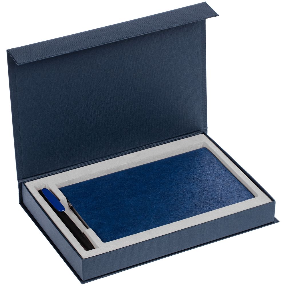 Коробка Silk с флокированным ложементом под ежедневник и ручку, ver. 2, темно-синяя