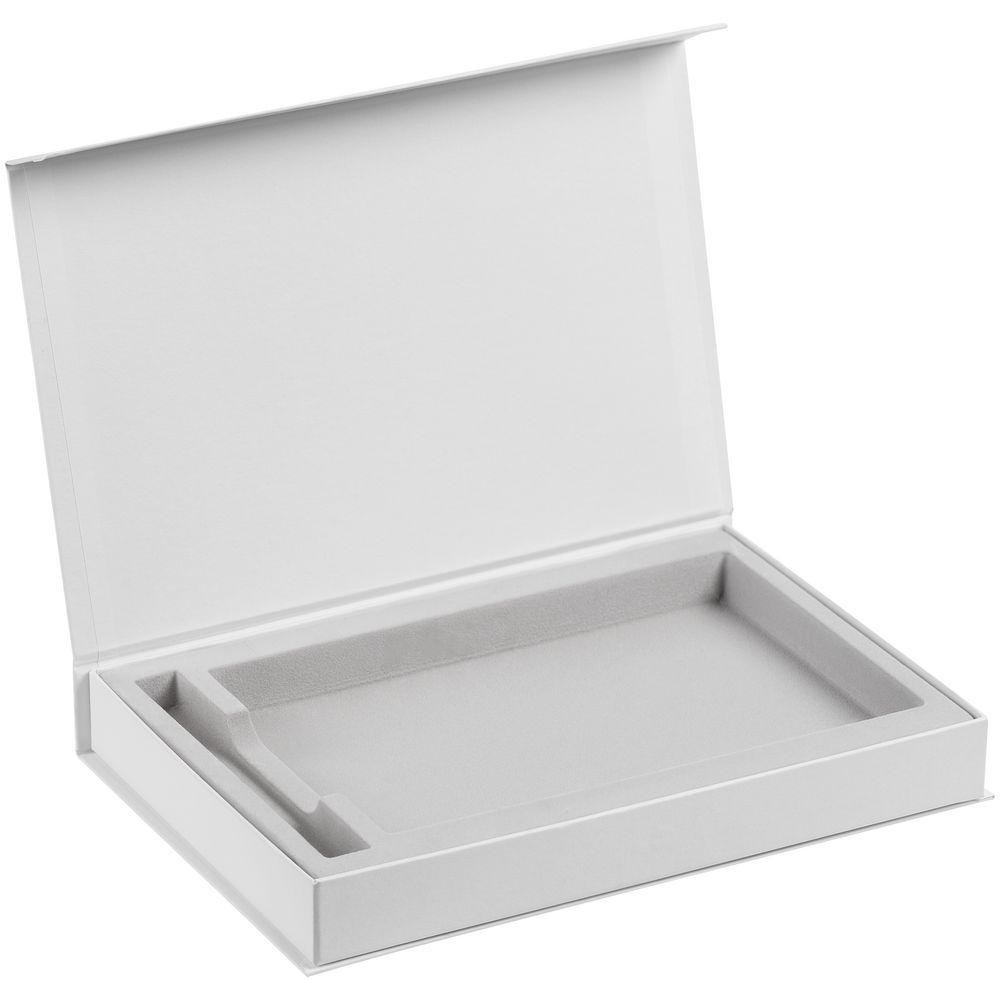 Коробка Silk с флокированным ложементом под ежедневник и ручку, ver. 2, белая
