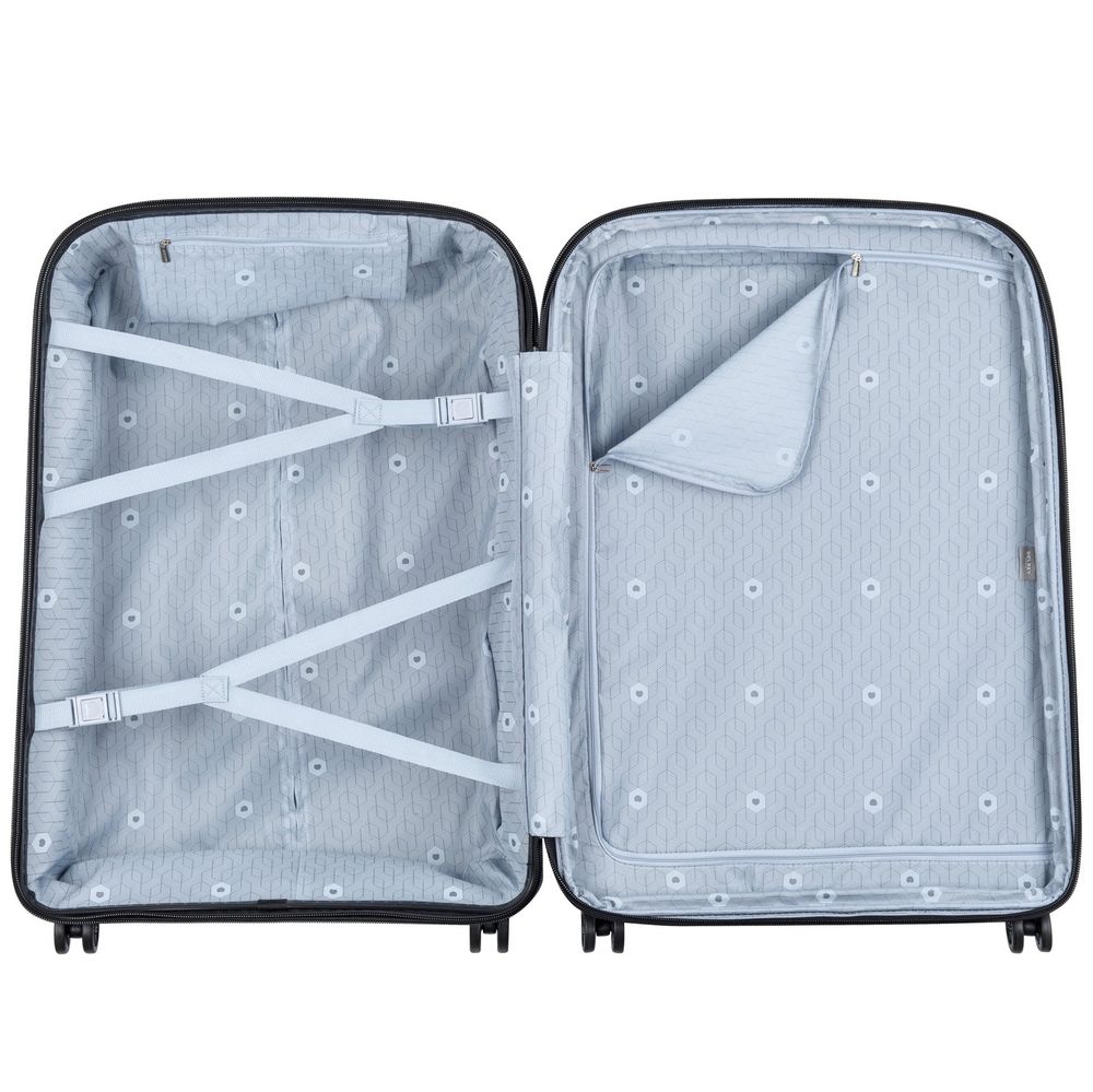 • Чемодан с 2 отделениями: одно из них с фиксирующими ремнями и карманом-органайзером на молнии, второе — с разделителем