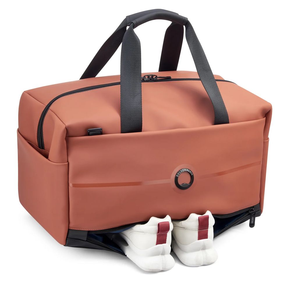 Дорожная сумка Turenne — шикарный вариант для самых требовательных путешественников. Основное отделение с широко раскрывающейся молнией позволяет легко расположить несколько стопок одежды. Мягкий карман с застежкой-липучкой идеально подходит для безопасной транспортировки планшета или компьютера. Два сетчатых кармана — для размещения модных аксессуаров или небольшой бутылки. Два наружных кармана на молнии, расположенные спереди и сзади, — чтобы всегда были под рукой билеты и роман для чтения на время путешествия. Два открытых боковых кармана — чтобы добавить что-нибудь в последнюю минуту, и нижний карман — для обуви.