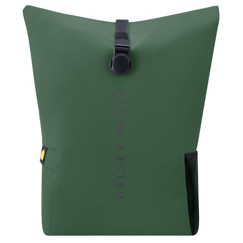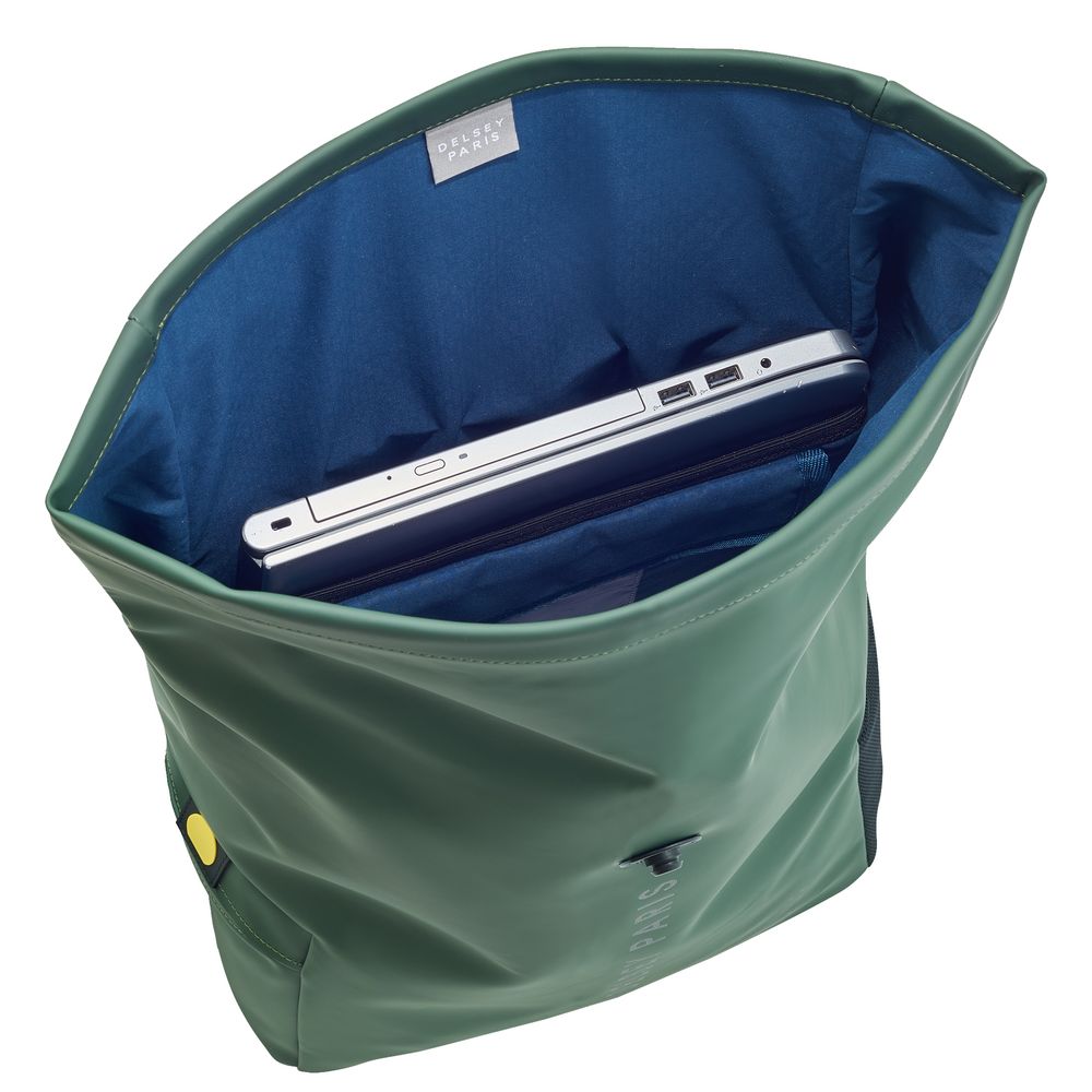 Вместимость рюкзака можно адаптировать благодаря застежке роллтоп: соедините магниты, заверните часть, оставшуюся свободной, и закрепите ее с помощью зажима.