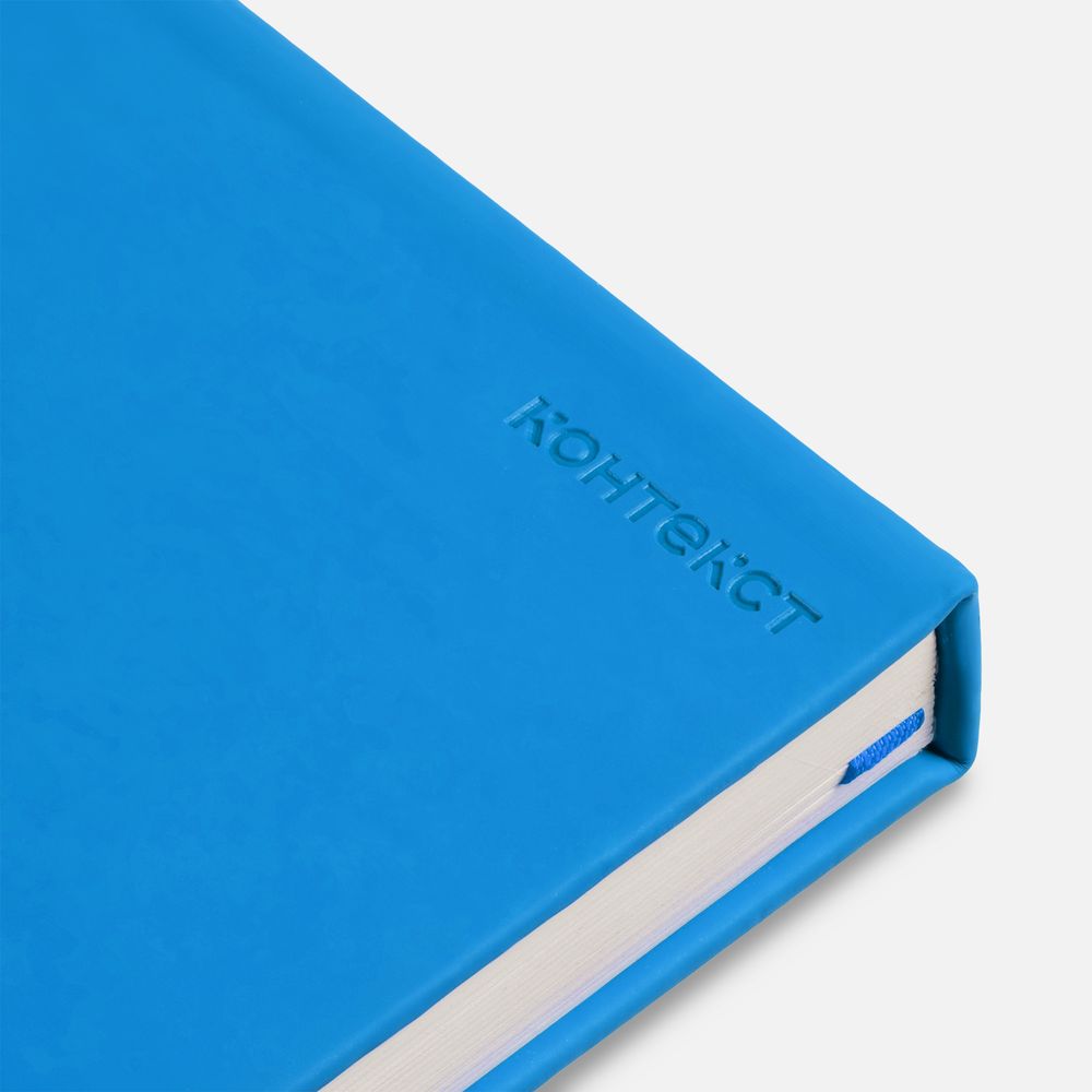 Ежедневник в твердой обложке, выполненной из материала Soft Touch Ultra, голубой JJ, дополнен атласным ляссе и магнитом, удерживающим ручку.