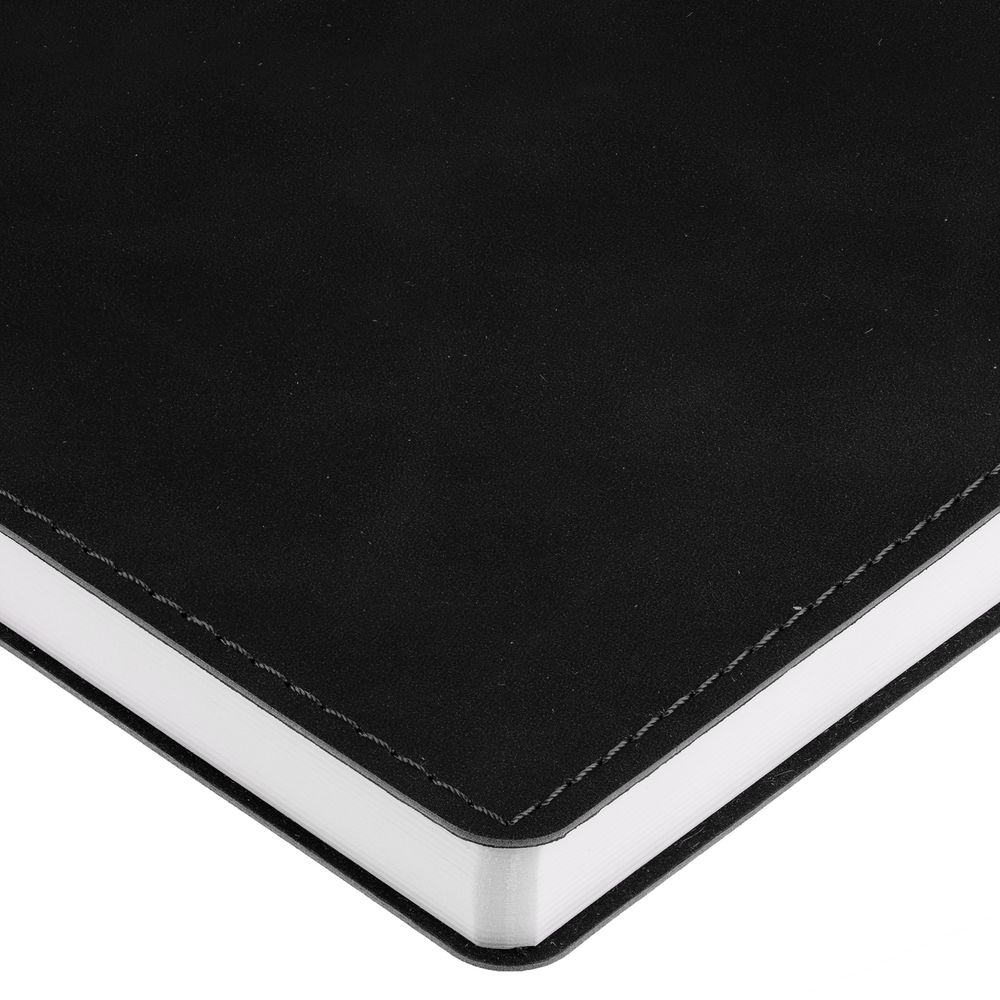 Ежедневник с гибкой обложкой, выполнен из материала Nubuck Touch, черный AA, дополнен ляссе в цвет обложки.