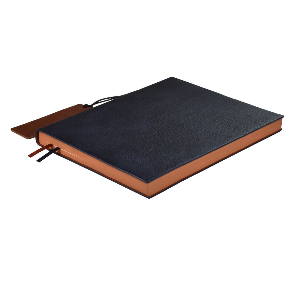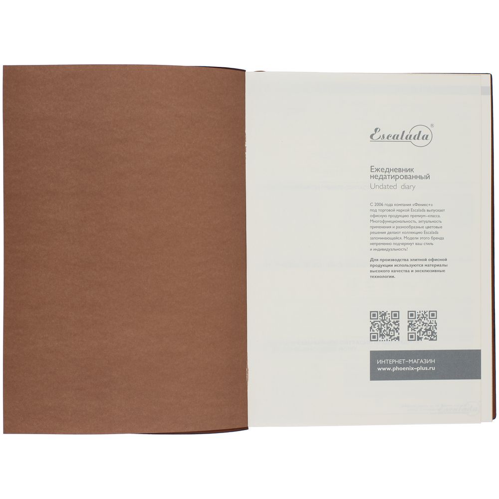 Ежедневник с гибкой обложкой и закладкой из искусственной кожи, дополнен капталом и двойным ляссе.