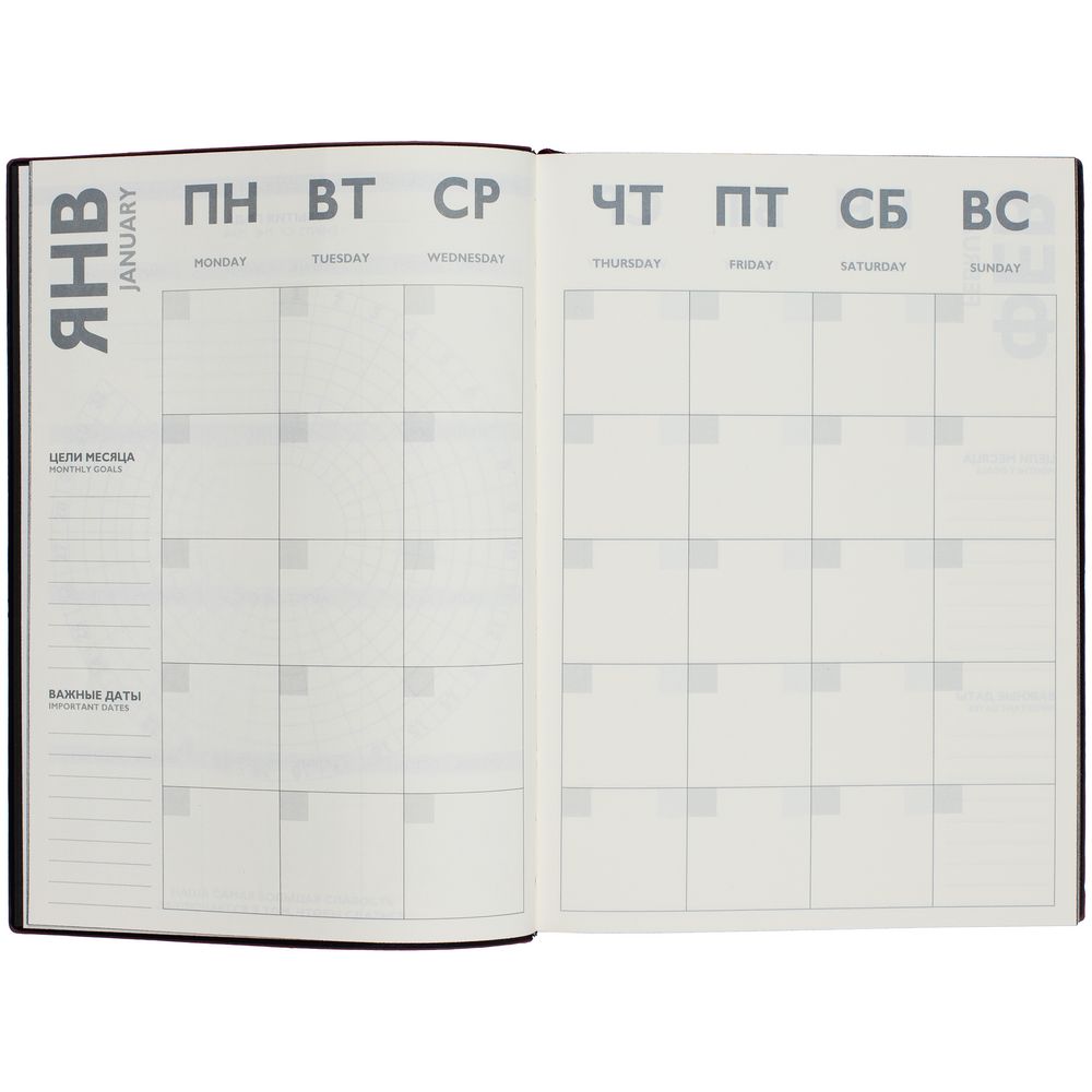 Ежедневник с гибкой обложкой и закладкой из искусственной кожи, дополнен капталом и двойным ляссе.