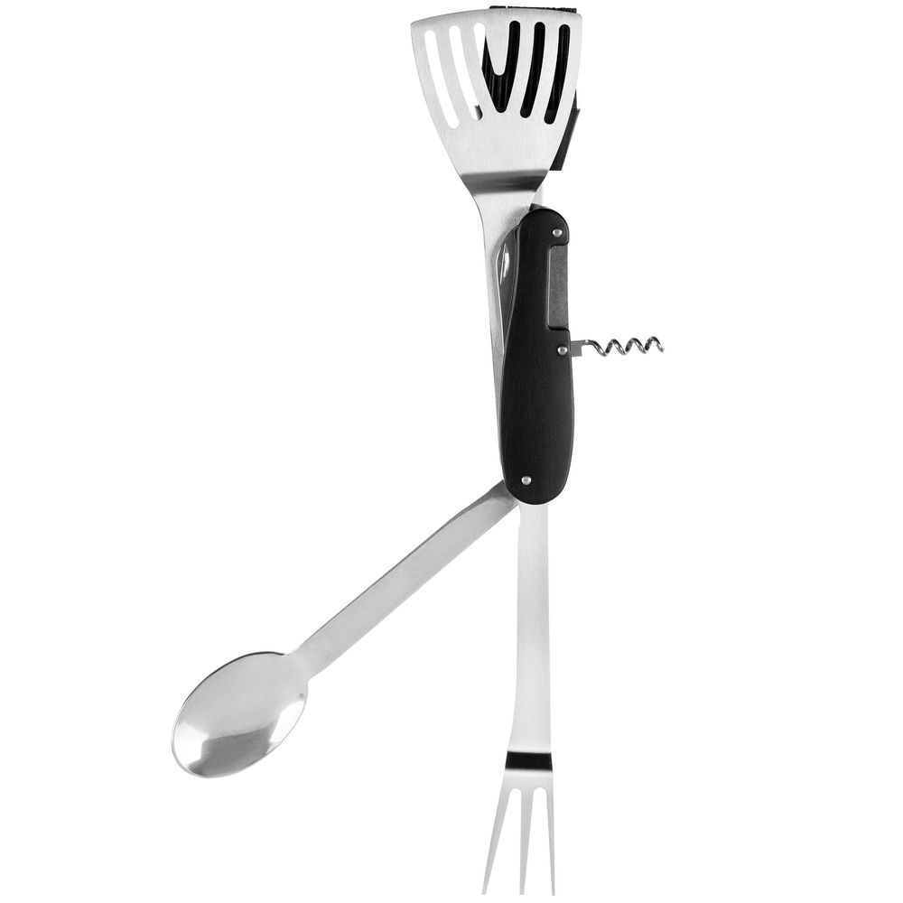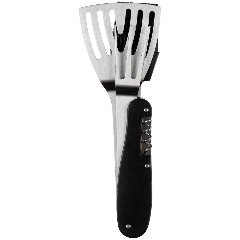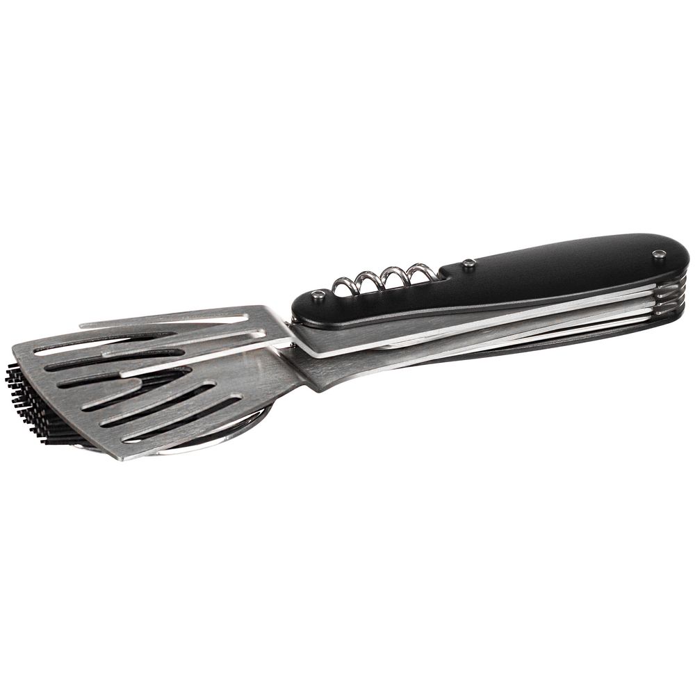 В одном инструменте объединены шесть функций: лопатка, ложка, кулинарная кисть, вилка, нож и штопор. Это позволяет легко выполнять все основные задачи во время барбекю с максимальным удобством.
