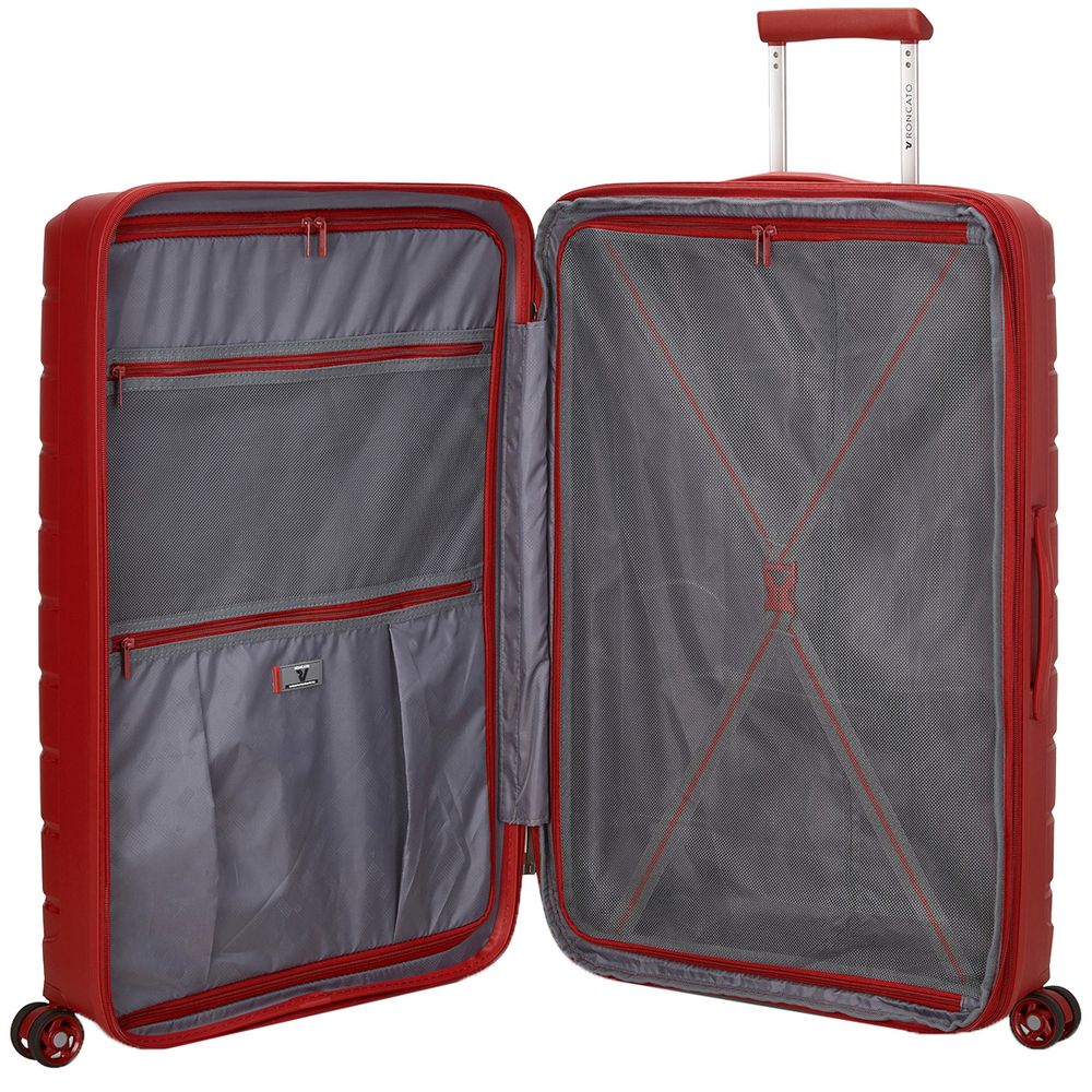 • Чемодан с 2 отделениями: одно отделение с сетчатым разделителем и прижимными ремнями, а второе оснащено перегородкой на молнии с двумя карманами