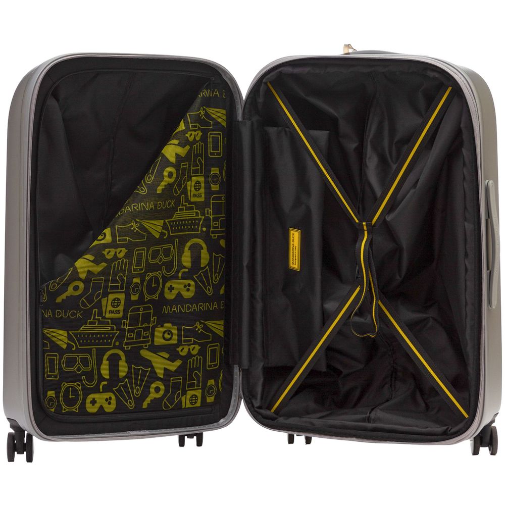 Коллекция чемоданов из поликарбоната Logoduck+ стала настоящим бестселлером: обтекаемые изящные формы, колеса в тон корпуса, крупный логотип бренда, подкладка с принтом и яркие цвета делают их уникальными в своем роде. Упаковочные ремни, разделитель на молнии и дополнительный карман для мелочей помогут аккуратно упаковать все необходимые вещи для поездки на 1-2 недели.