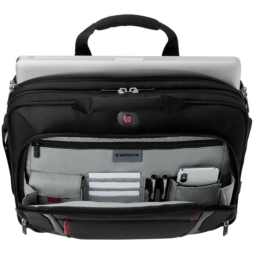 Отделение с карманом-органайзером включает ключницу, многочисленные кармашки для пишущих принадлежностей, документов и карты памяти, карман для телефона