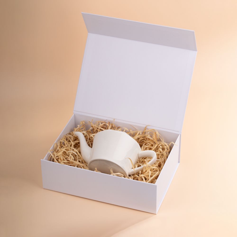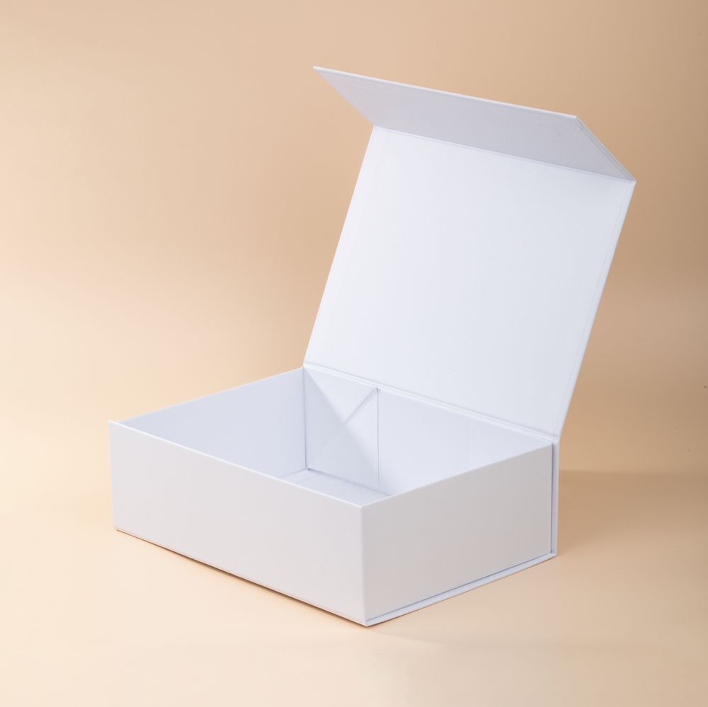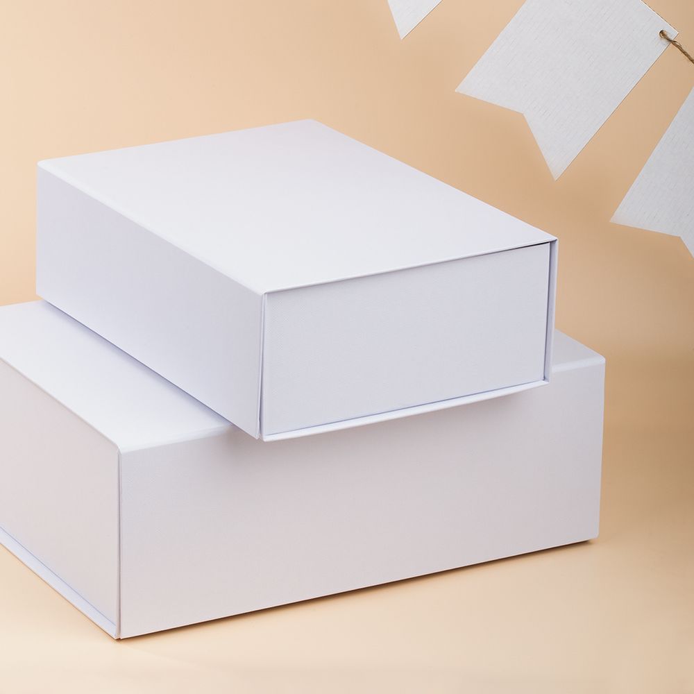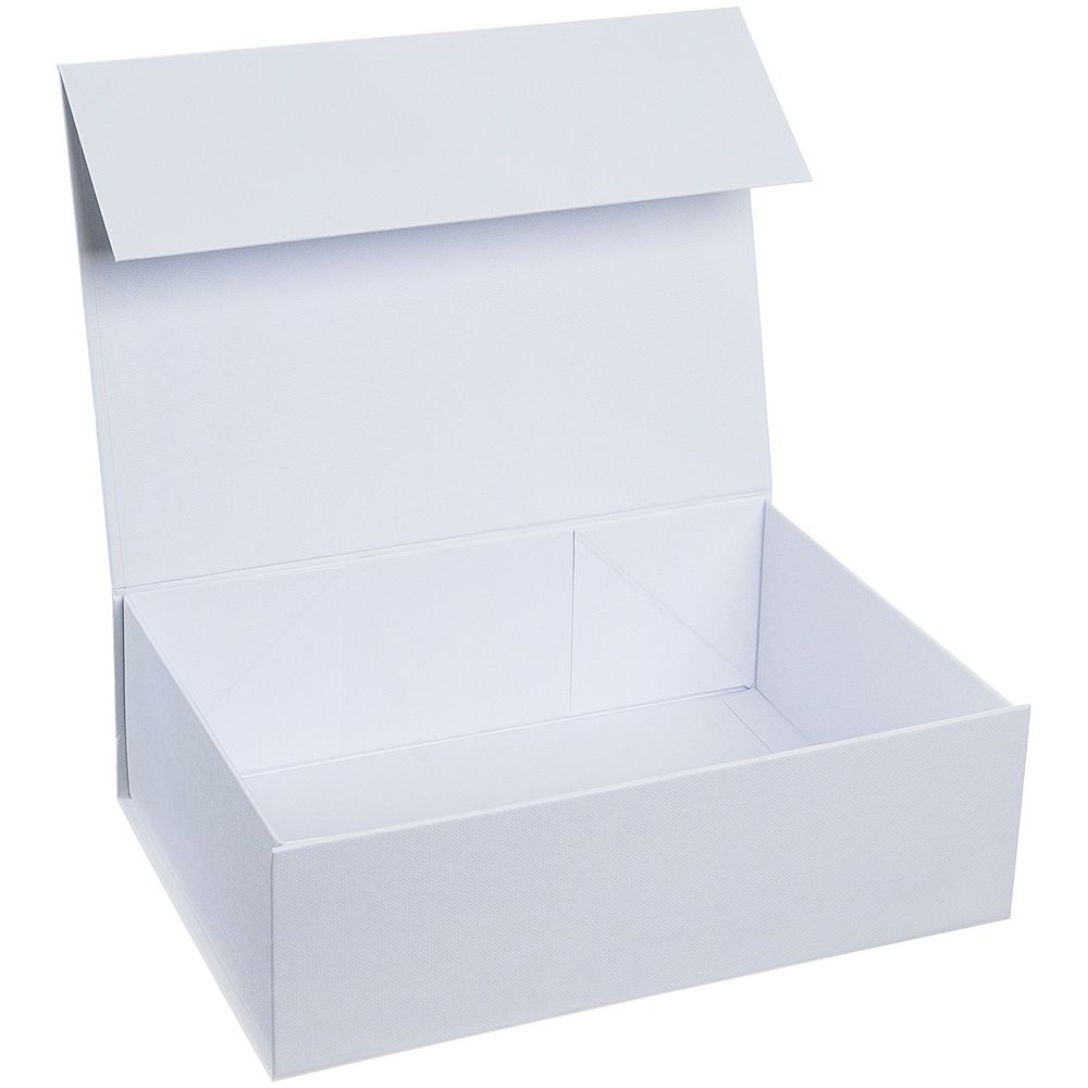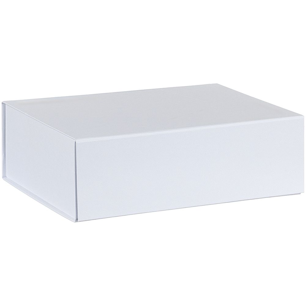 Коробка из переплетного картона, кашированного тисненой тонированной в массе бумагой, с крышкой на магните. Толщина картона 2 мм. Поставляется в плоском виде. Сборка осуществляется на скотч.