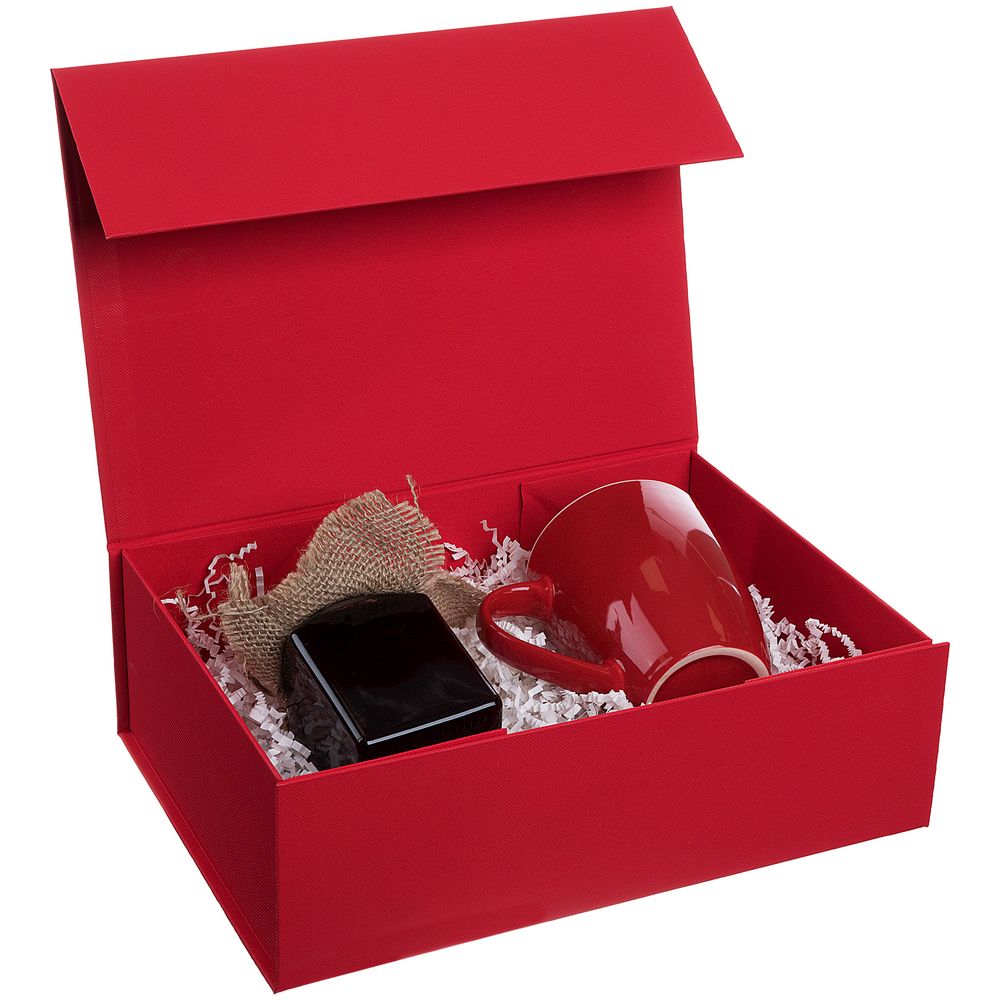 Коробка из переплетного картона, кашированного тисненой тонированной в массе бумагой, с крышкой на магните.