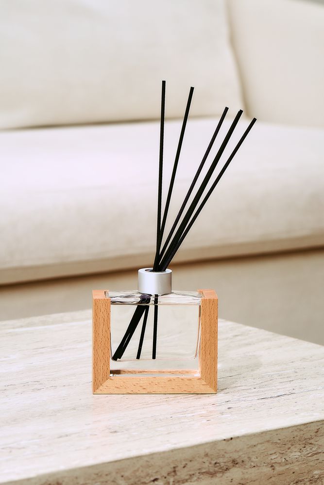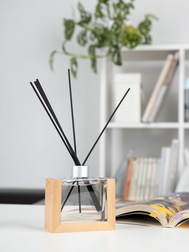 Изящный стеклянный флакон в обрамлении натурального дерева станет стильным элементом декора. Емкость 120 мл. Ароматической жидкости хватит примерно на 5 месяцев использования. В комплекте 6 фибровых палочек длиной 25 см.