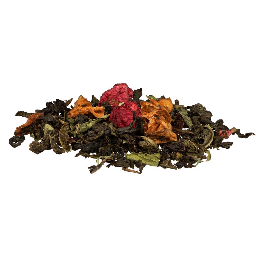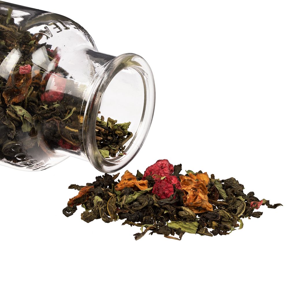 Зеленый крупнолистовой чай с соком ананаса, сублимированной малиной и сушеной мятой обладает многогранной палитрой вкуса и аромата. В состав чая входят только натуральные ингредиенты, а чайные листья предварительно вымачиваются в соке ананаса: вкус напитка становится особо насыщенным и обогащенным. «Сокочай» станет прекрасным подарком для любителей необычных вкусовых сочетаний и здорового образа жизни.Состав: чай зеленый с ананасом и соком ананаса (чай зеленый байховый крупнолистовой, кусочки ананаса, сок ананаса), малина сублимированная, мята сушеная, ароматизатор натуральный «малина». Вес нетто: 130 г Срок годности: 24 месяца