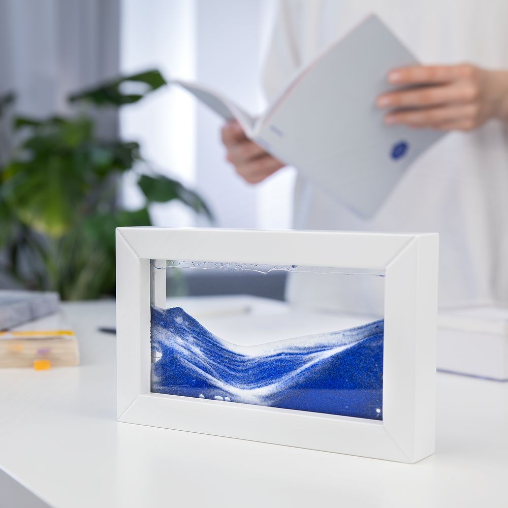 Песочный антистресс — это живая картина, в которой струящиеся в воде цветные песчинки создают неповторимые пейзажи. Наблюдение за невероятными образами позволит расслабиться и отвлечься от дел, успокоив глаза и мысли. Достаточно перевернуть картину на 180°. Примерное время падения песка — 30 секунд. Поставляется в индивидуальной упаковке.