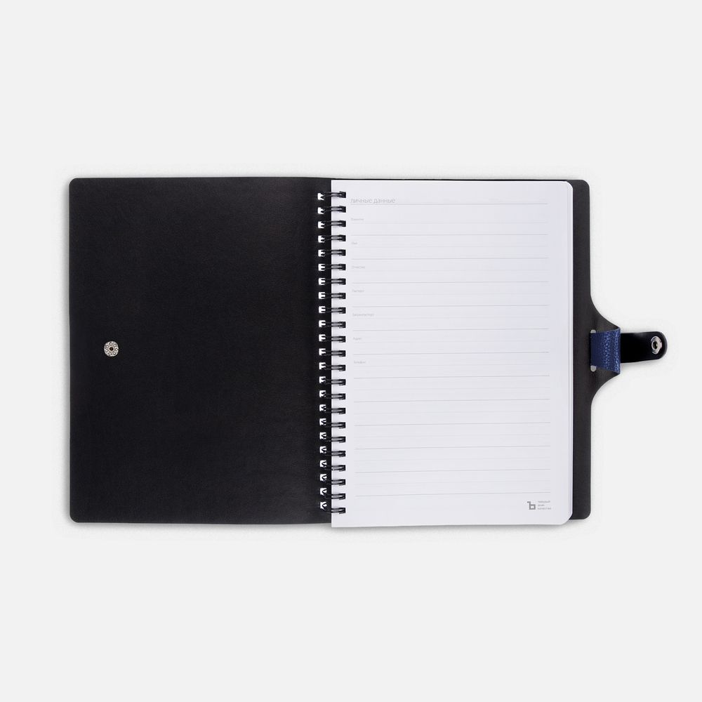 Ежедневник с гибкой обложкой, выполнен из материалов La Fite, синий НН и Waltz черный АА.