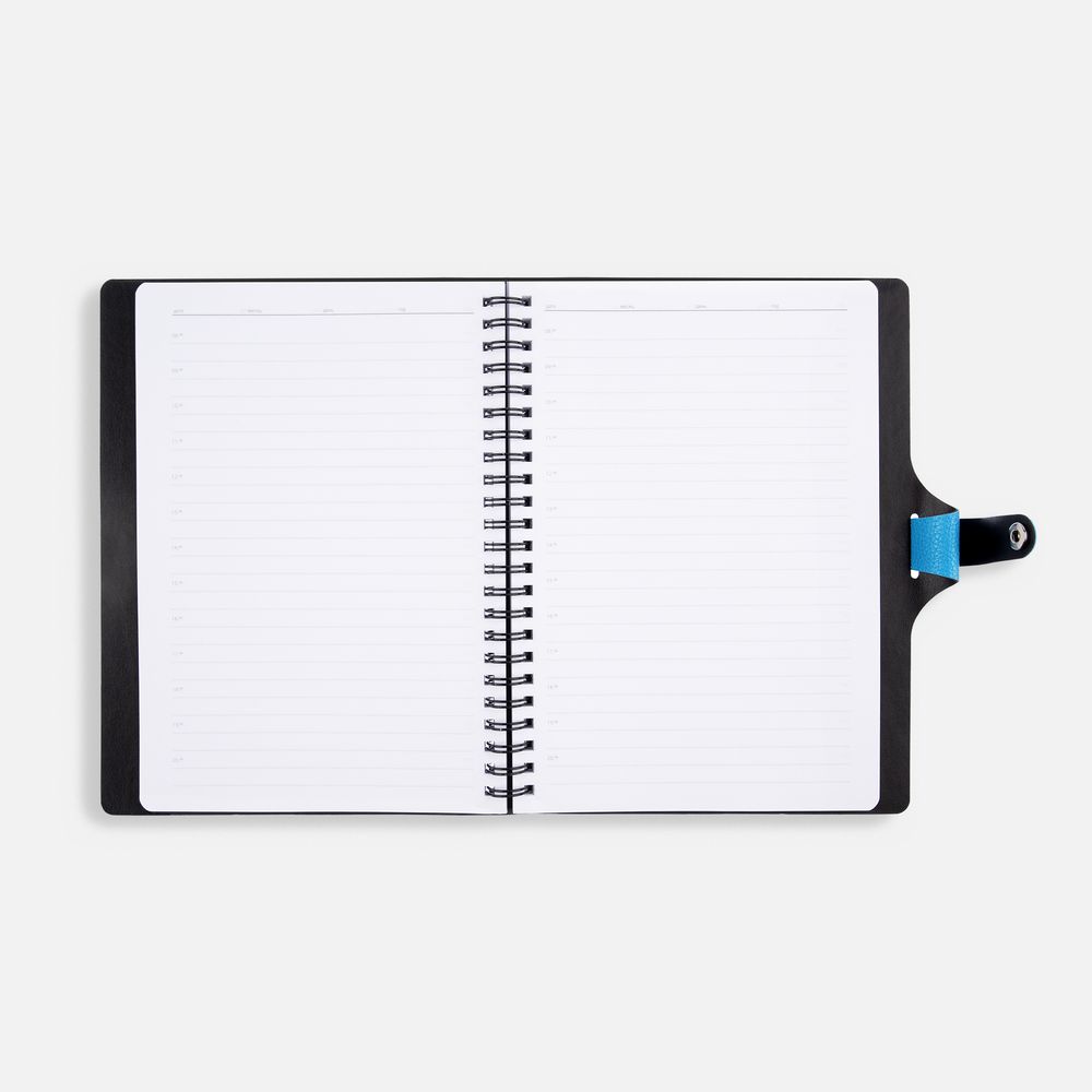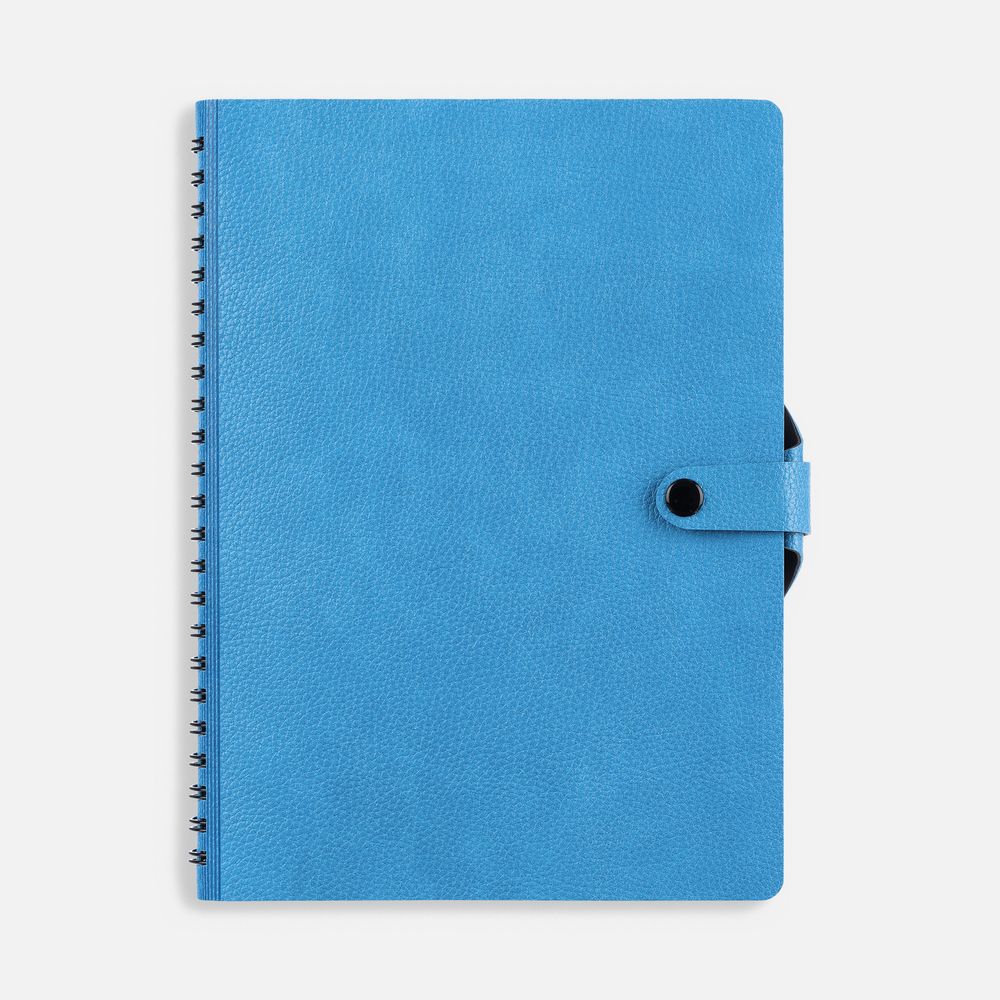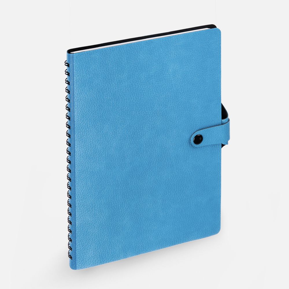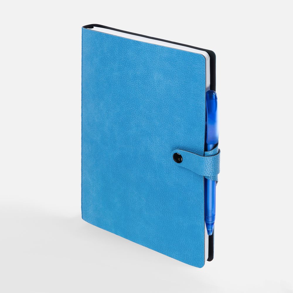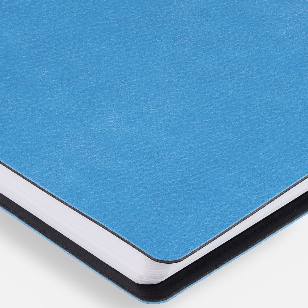 Ежедневник с гибкой обложкой, выполнен из материалов La Fite, голубой JJ и Waltz черный АА.