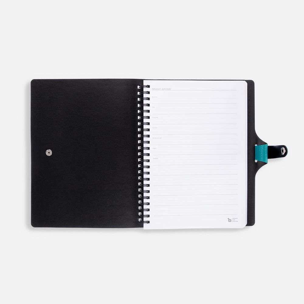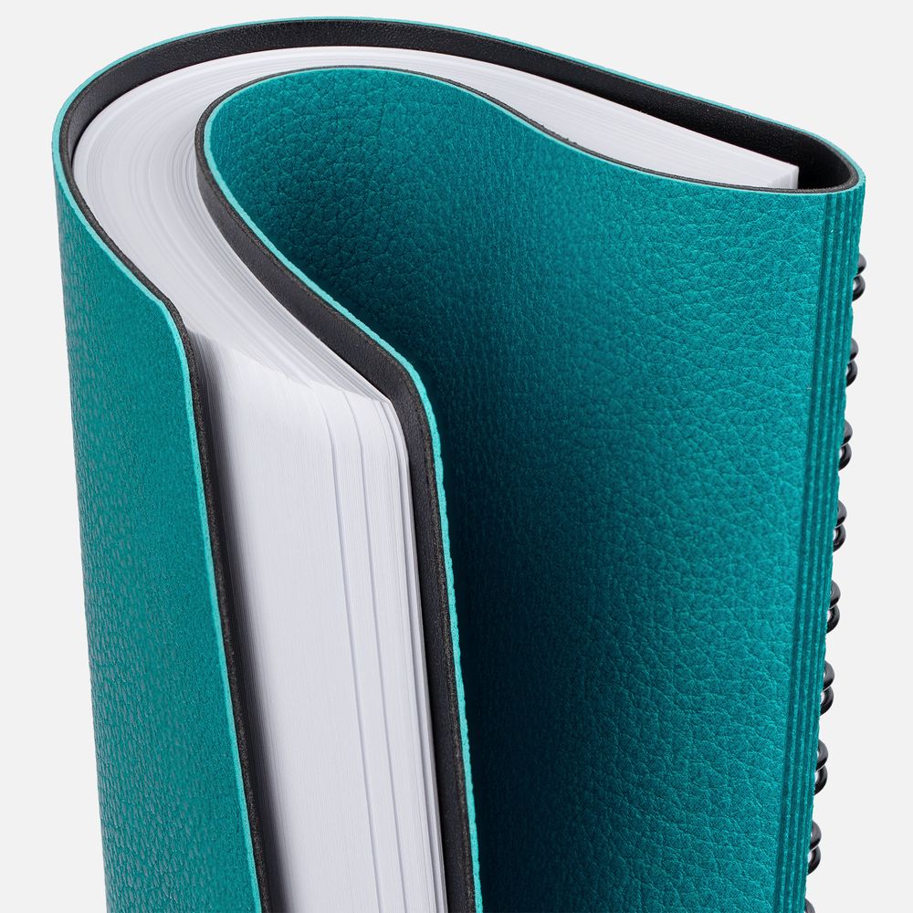 Ежедневник с гибкой обложкой, выполнен из материалов La Fite, цвет морской волны II и Waltz черный АА.