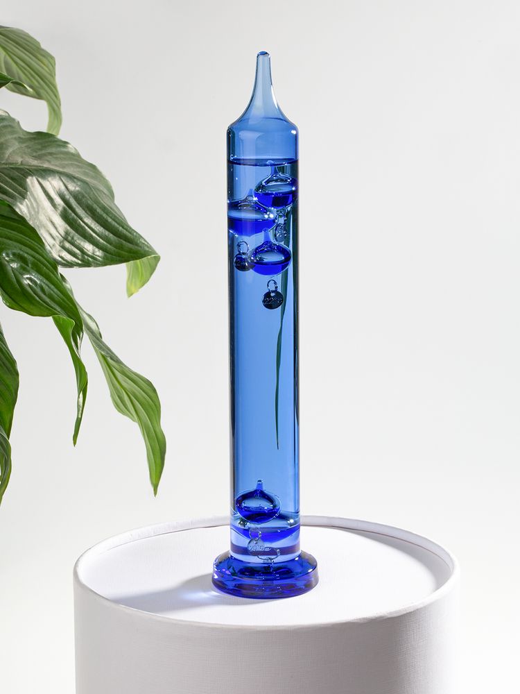 Термометр Галилео в цветном стеклянном корпусе с прочным плоским основанием — это не только интересный и полезный сувенир, но и элемент современного дизайна. Термометр заполнен жидким парафином. Для использования в помещении. Температура определяется по значению на самом верхнем всплывшем шарике.