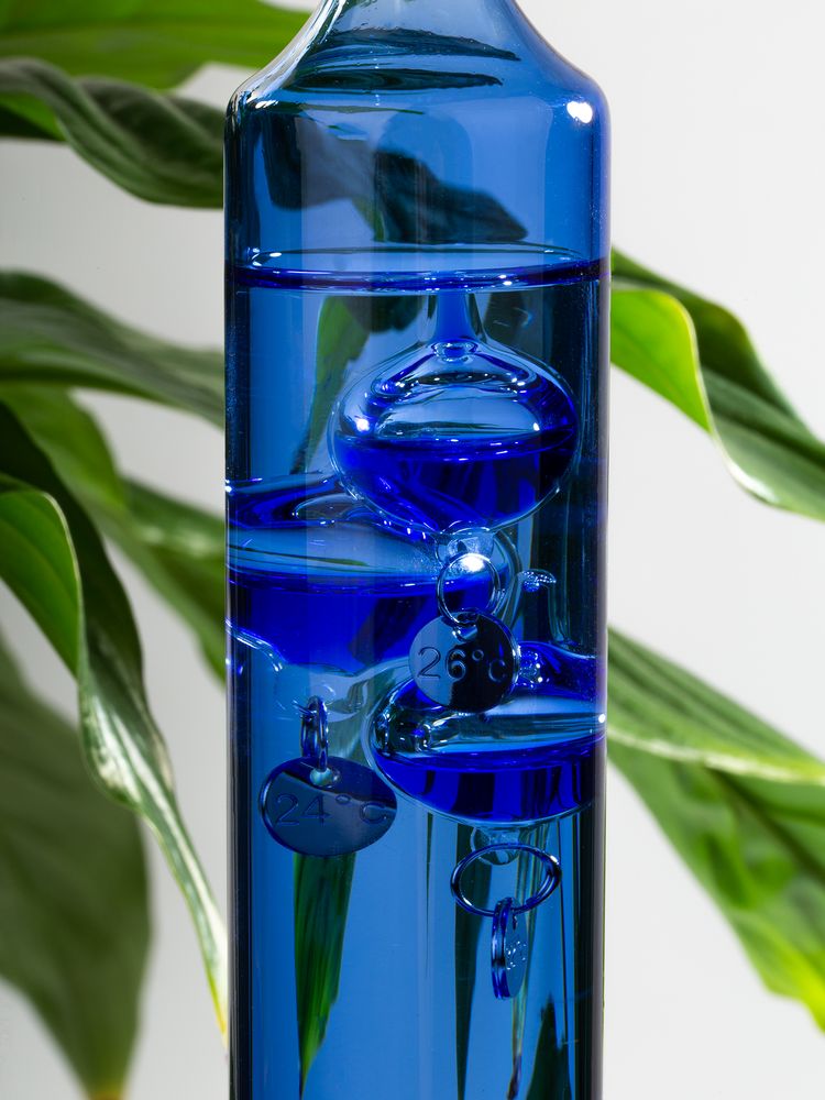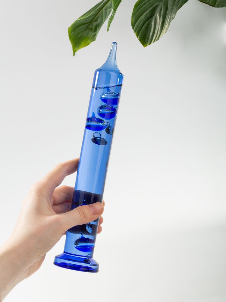 Любопытный термометр, изобретенный великим Галилео Галилеем, который первым обнаружил, что плотность жидкости увеличивается при снижении температуры и уменьшается при ее повышении.