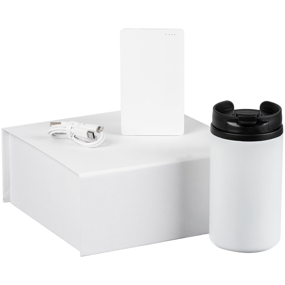 Набор Easy Trick — незаменимый спутник в дороге и офисе, с которым легко восполнить заряд энергии. Плоский аккумулятор легко поместится даже в карман, а компактная термокружка — в любую кофемашину. Емкость термостакана 250 мл.