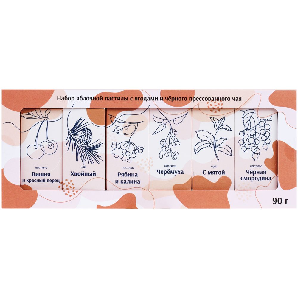 Подарочный набор Pasteala — чтобы насладиться вкусом натуральной пастилы из ягод и ароматного чая. Идеальный подарок для ценителей здорового образа жизни и вкусных удовольствий.В наборе 4 вкуса пастилы и 2 вида чая: