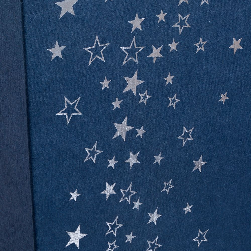 Подарочная коробка Serebrinka, кашированная дизайнерской бумагой глубокого синего цвета, с легкостью поможет создать праздничное настроение. Изящный узор из звезд выполнен серебристой краской в технике шелкографии, а глянцевая УФ-лакирование на некоторых элементах придает изделию особый блеск и шарм.