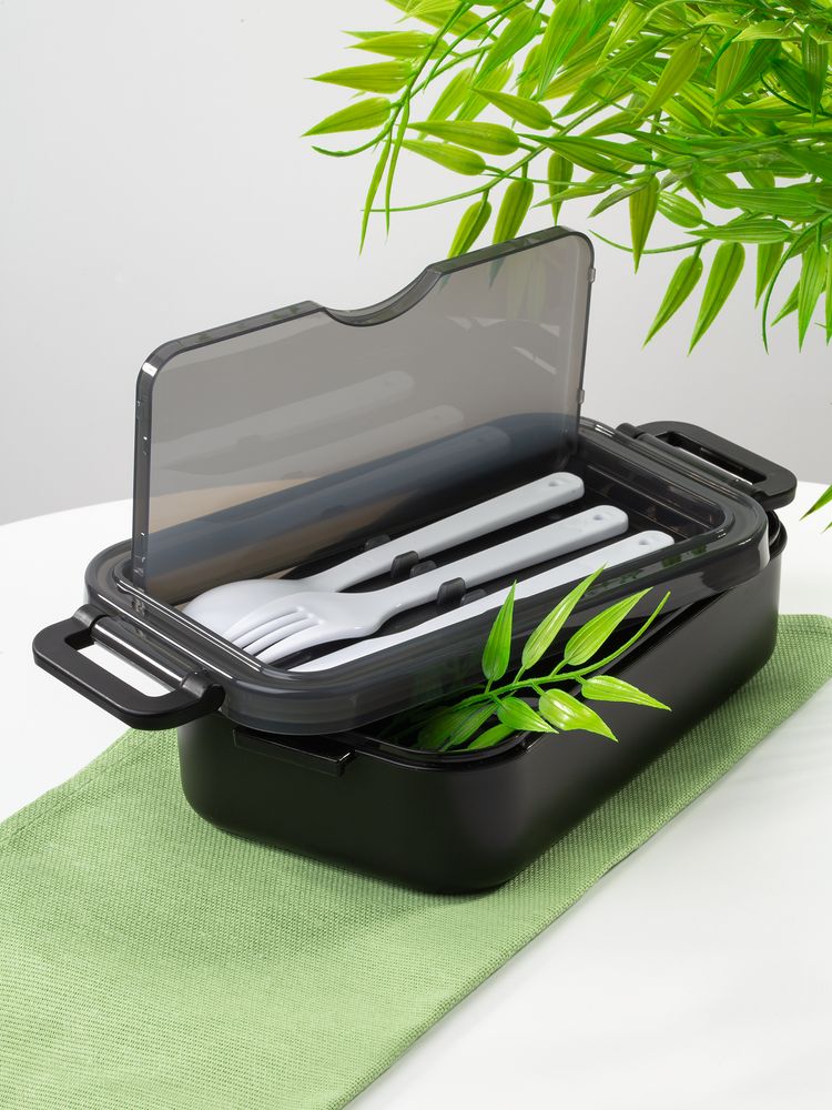 Удобная конструкция с крышкой на защелках обеспечивает надежную фиксацию. Специальное отделение под крышкой позволяет хранить столовые приборы, освобождая дополнительное пространство в сумке. Емкость 800 мл.